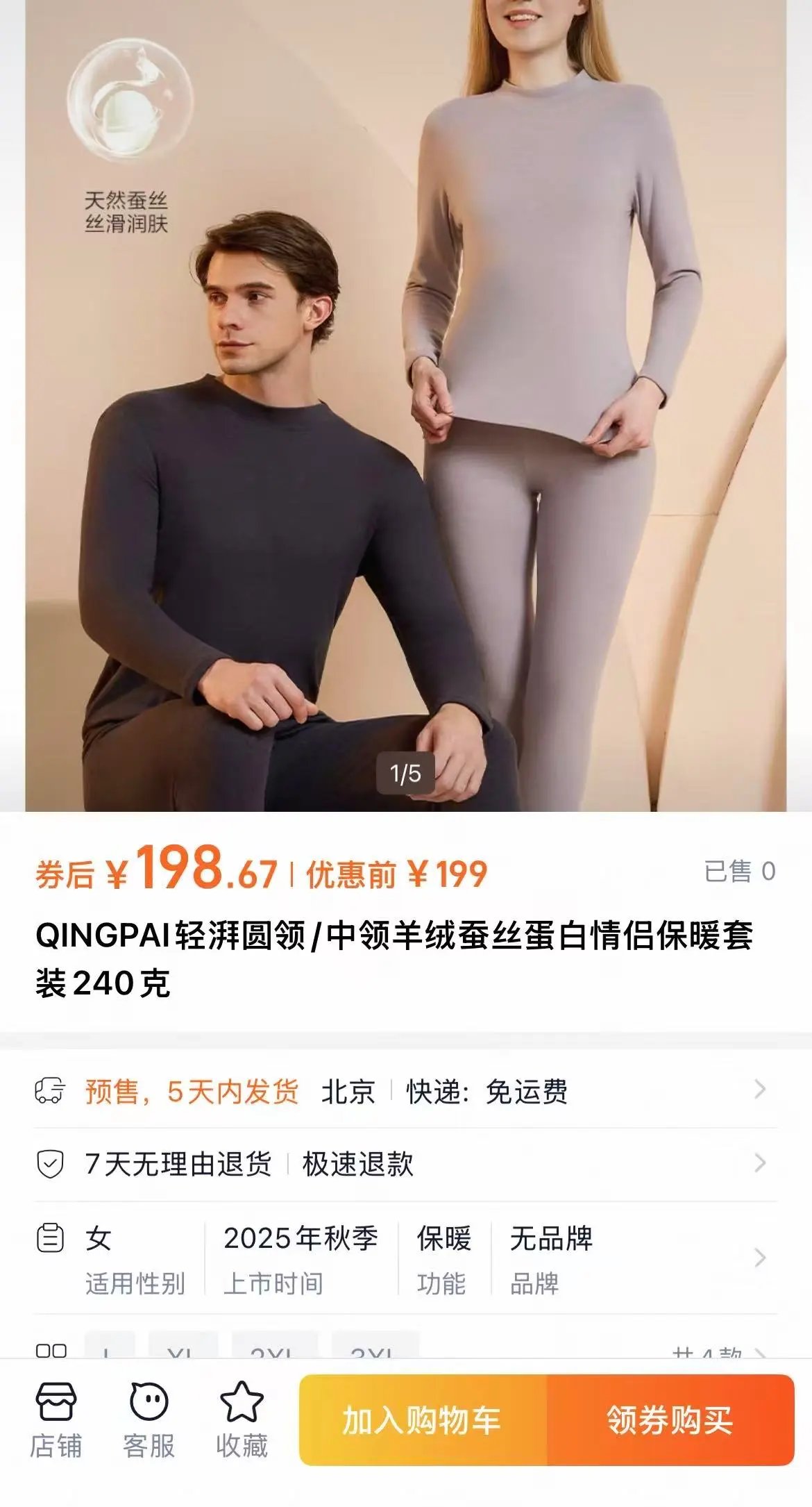 某宝上,同品质的保暖套装随便一搜都要好几百块,这款性价比真的~