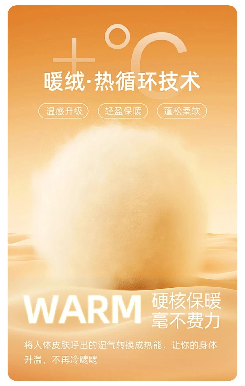 ✅ 仿生羊绒蚕丝混纺+暖绒热循环轻暖升温,硬核抗寒无负担~