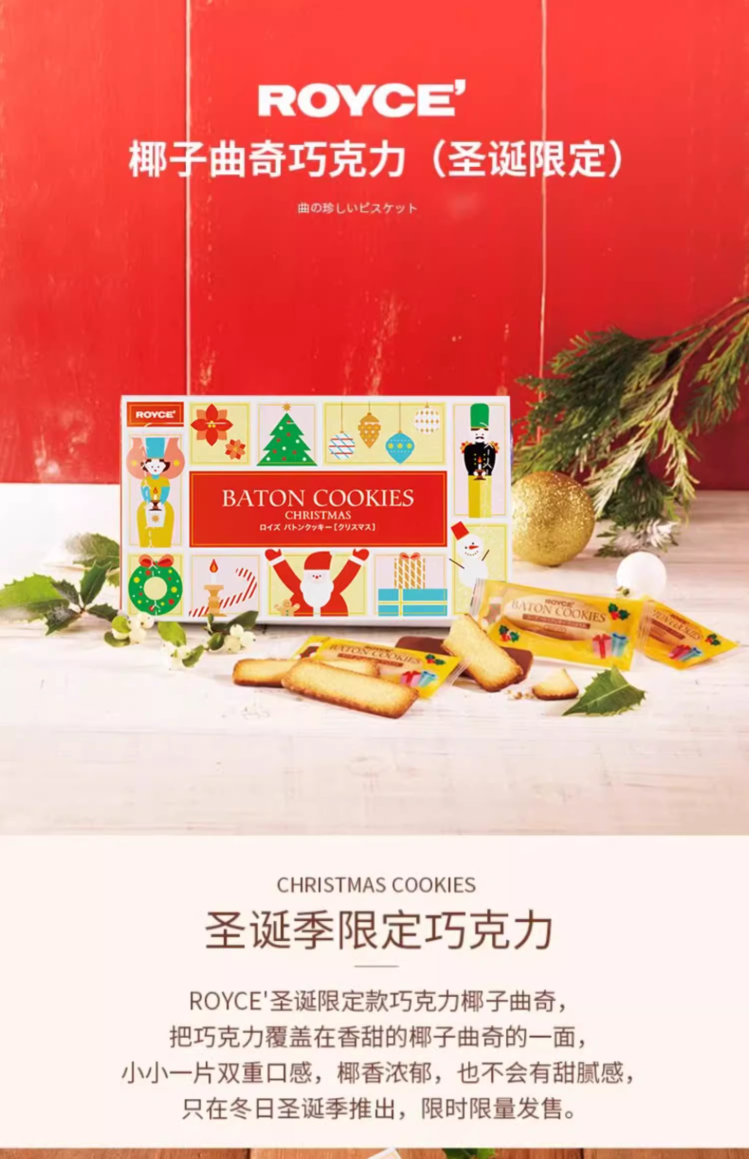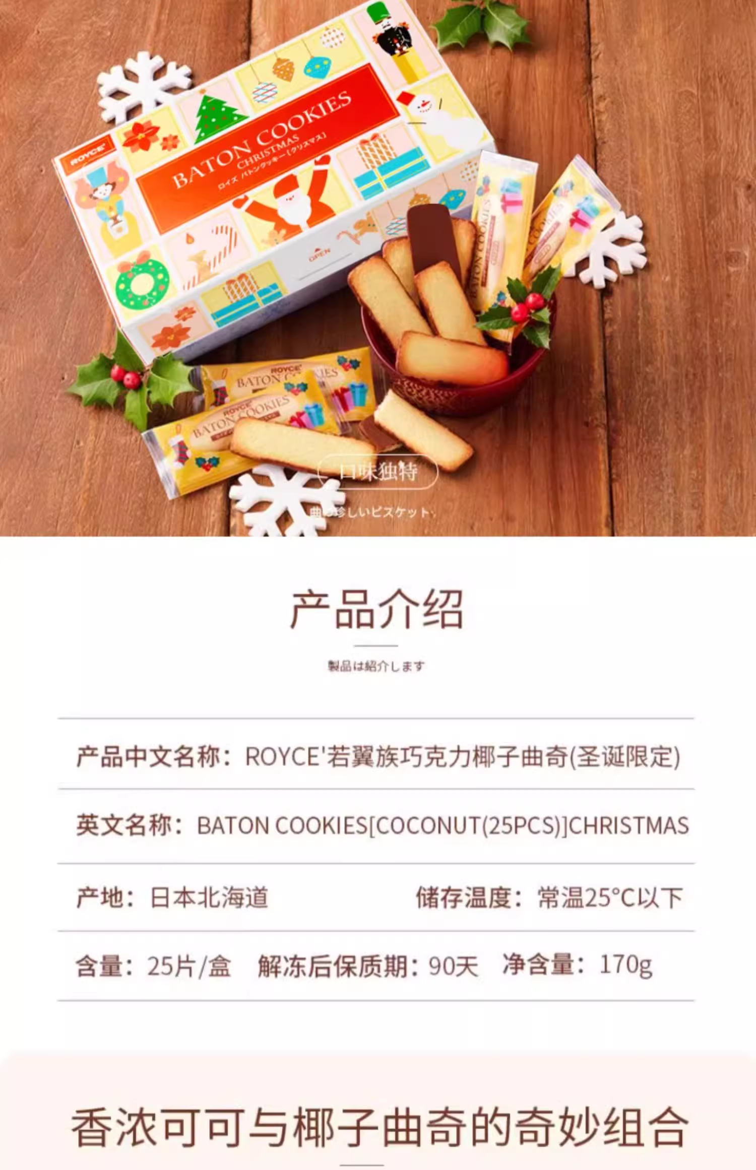 【新鲜市集】圣诞限定 ROYCE'若翼族日本北海道进口巧克力椰子曲奇送礼170g(解冻日期2025年11月)