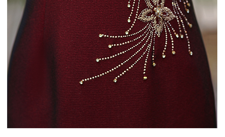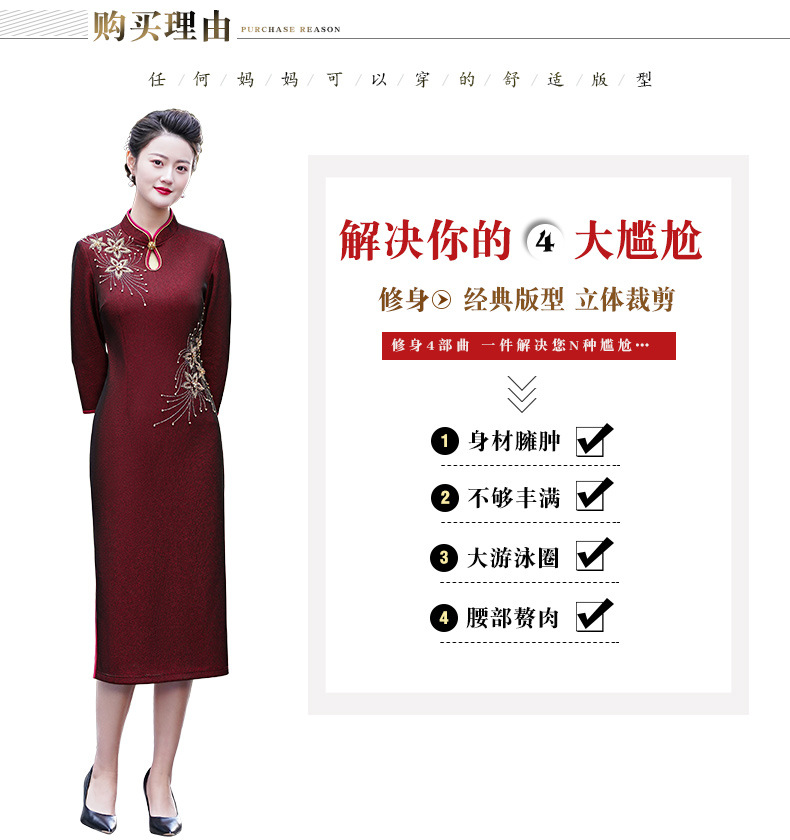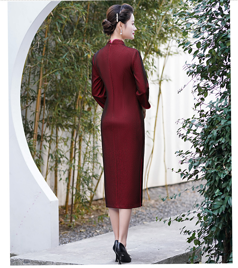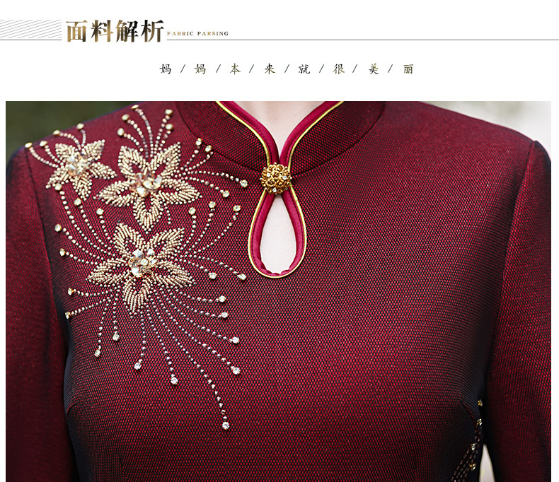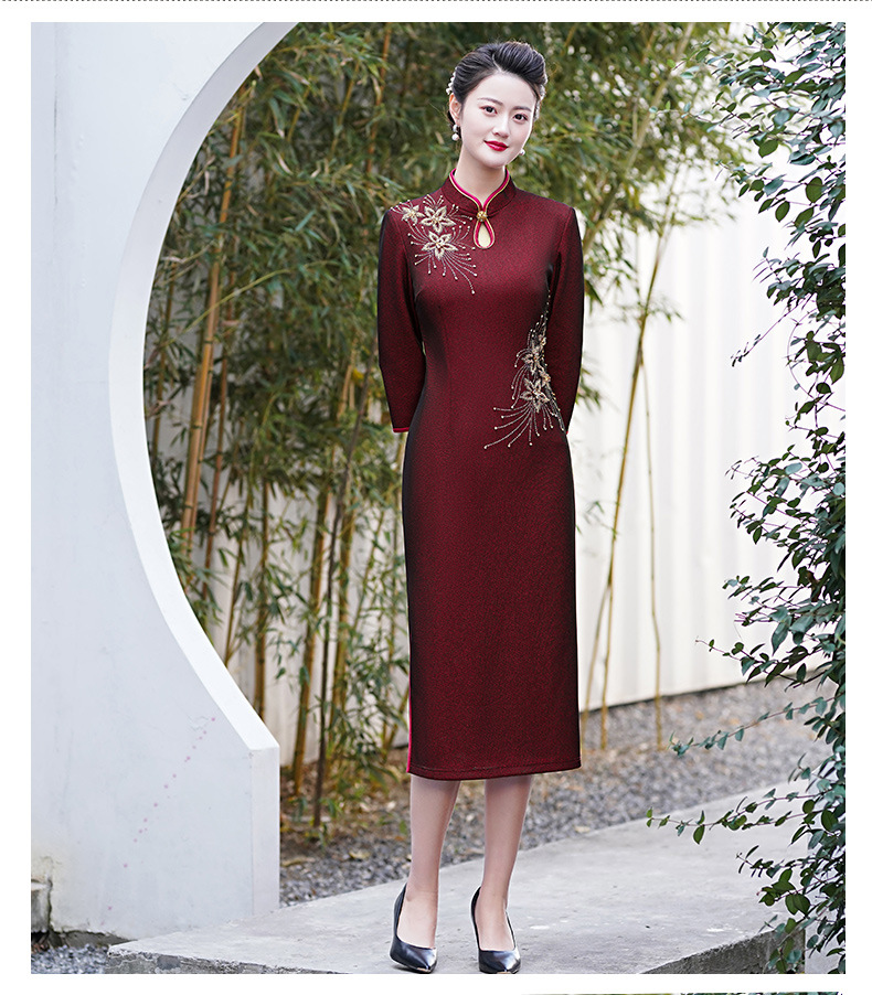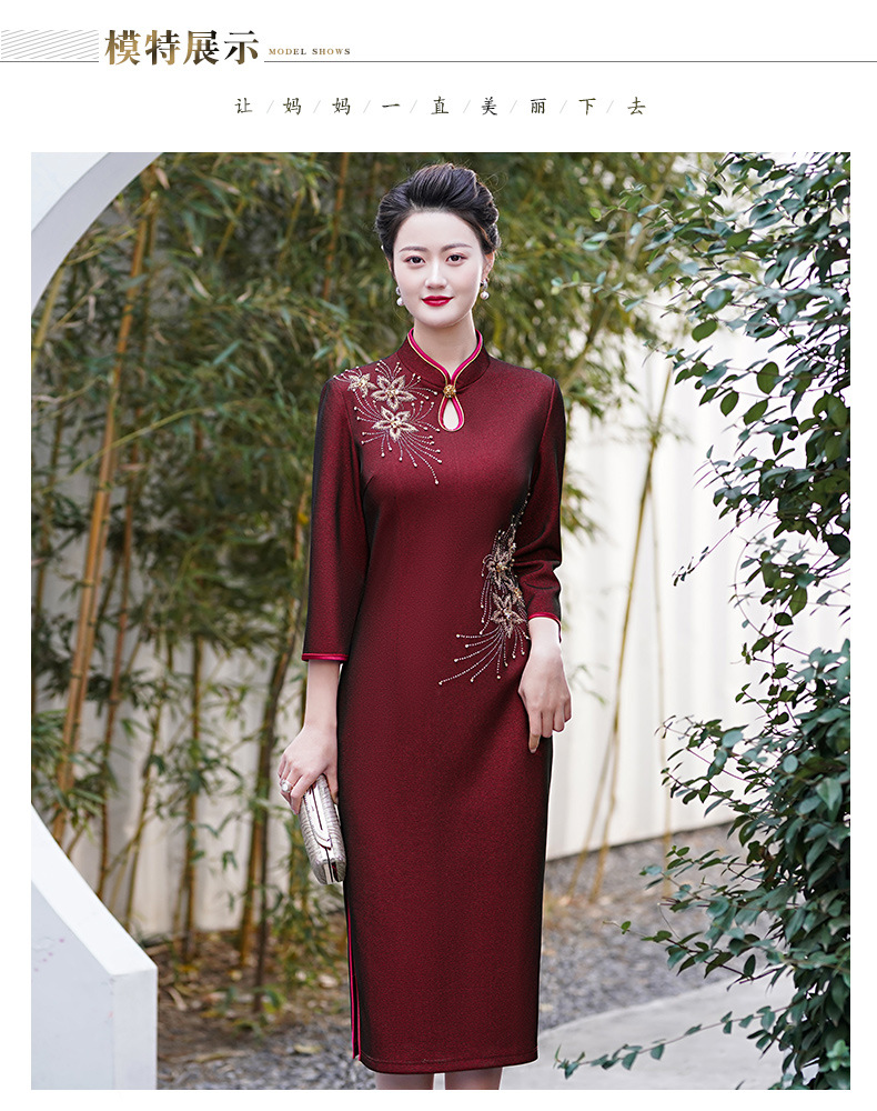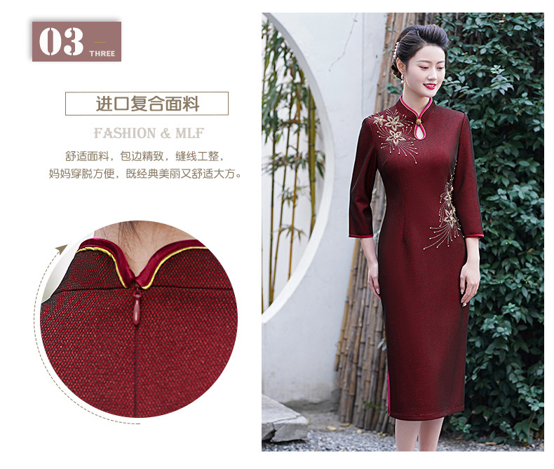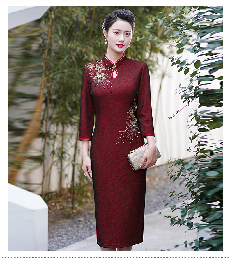 MLY秋冬新款旗袍复合料中长款钉珠旗袍立领宴会礼服