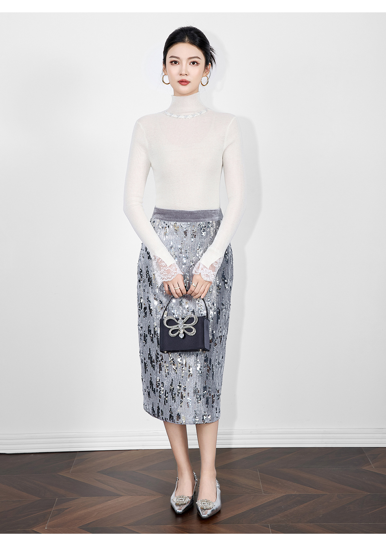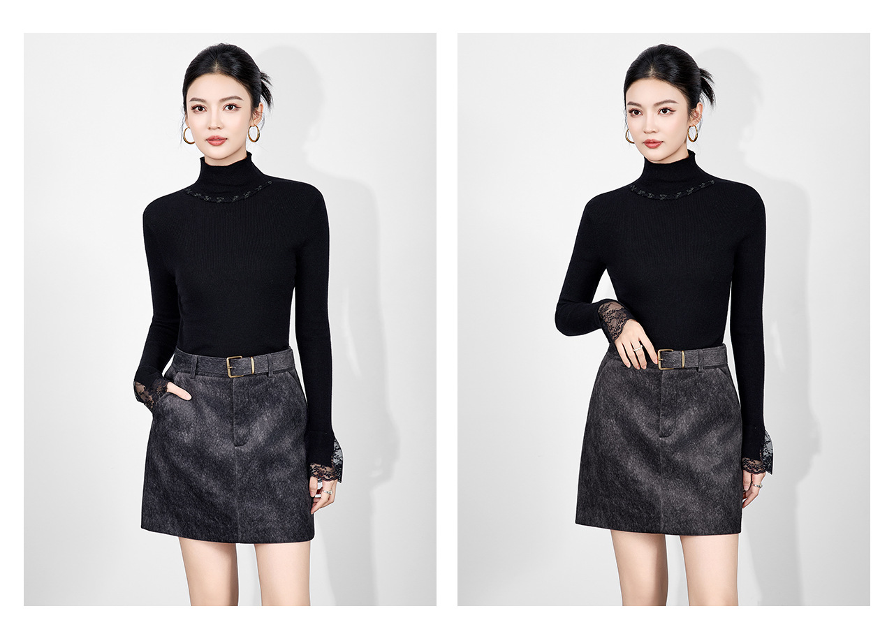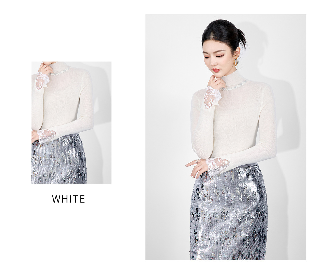 「高货wl」全新升级【铂金会员192/天猫259/差价67】(03617)洛诗琳气质烫钻针织衫2025秋冬女人味蕾丝拼接袖打底上衣