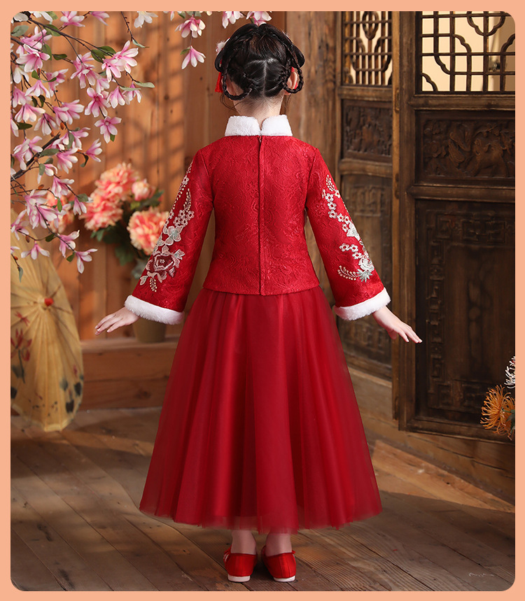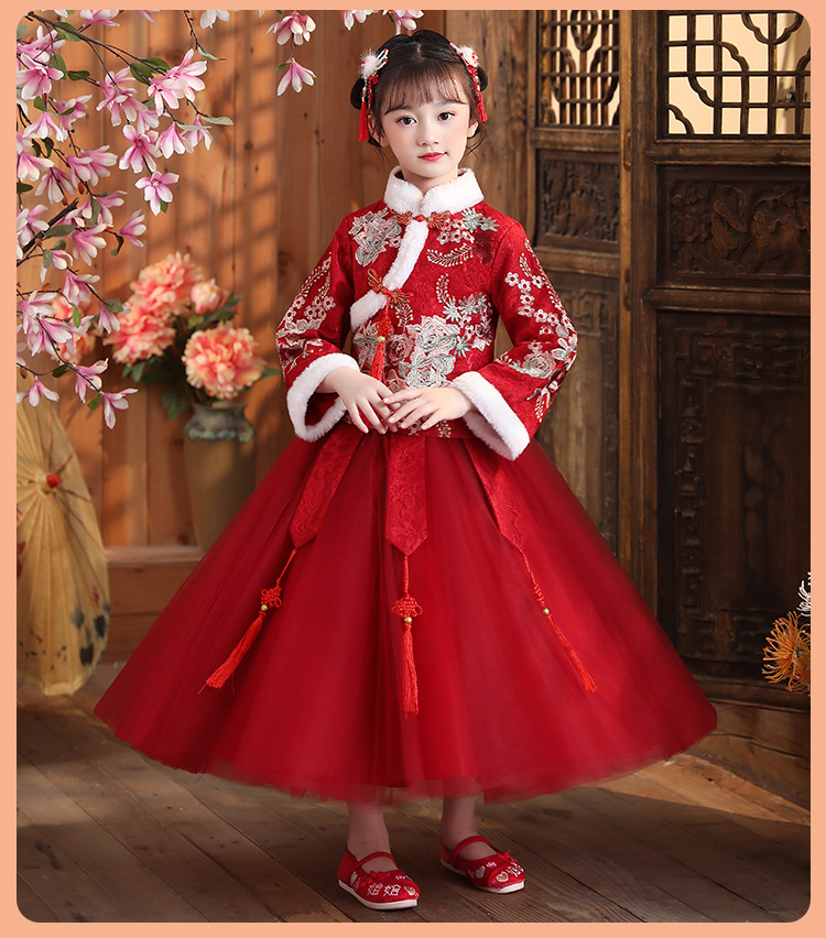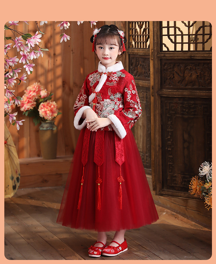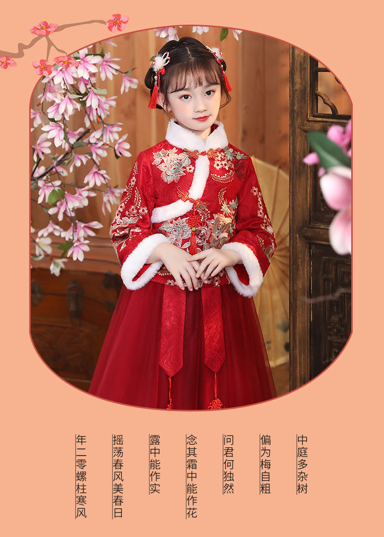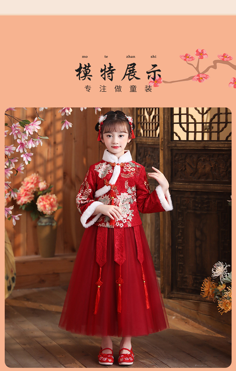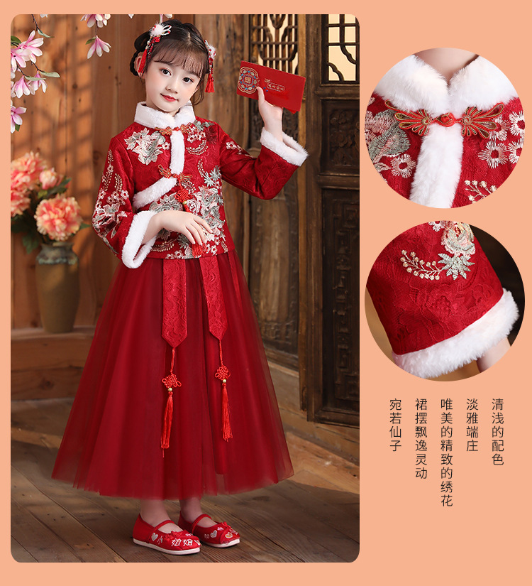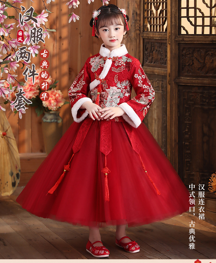 DY-9938汉服女童连衣裙套装秋冬新款女孩中国风唐装古装拜年服儿童裙