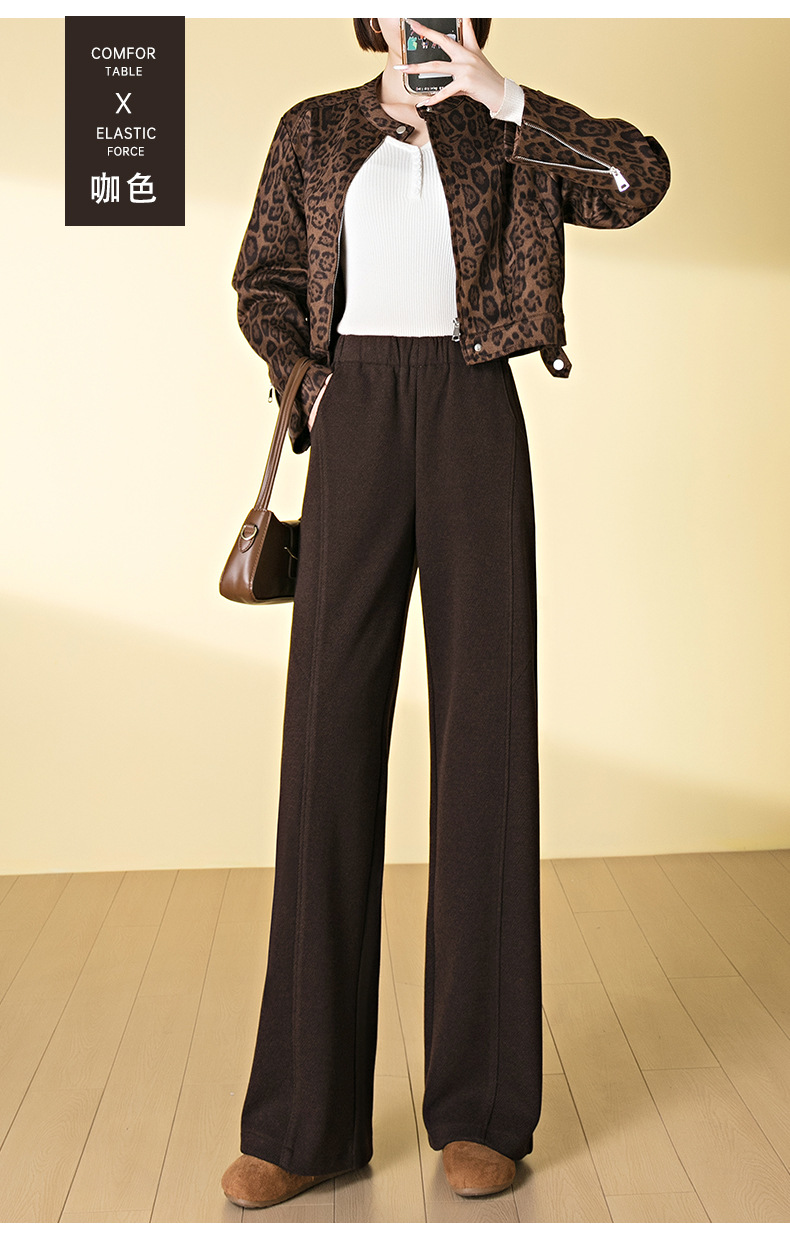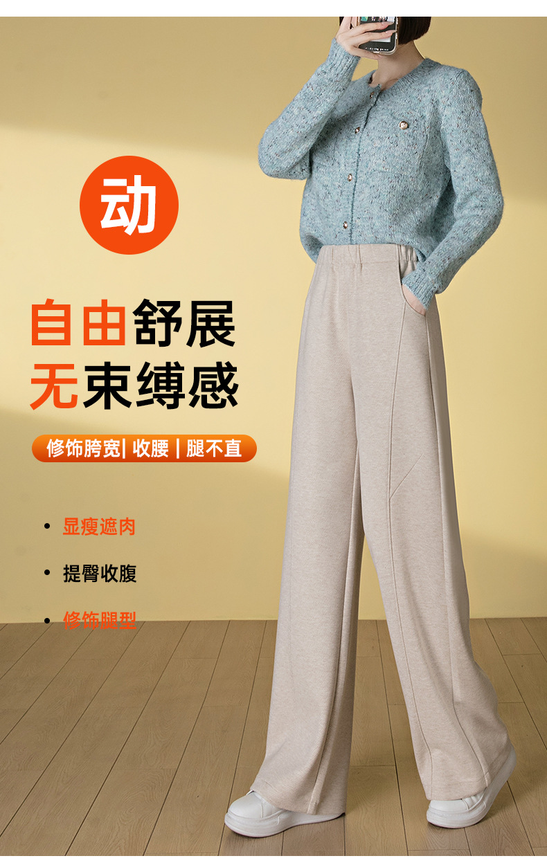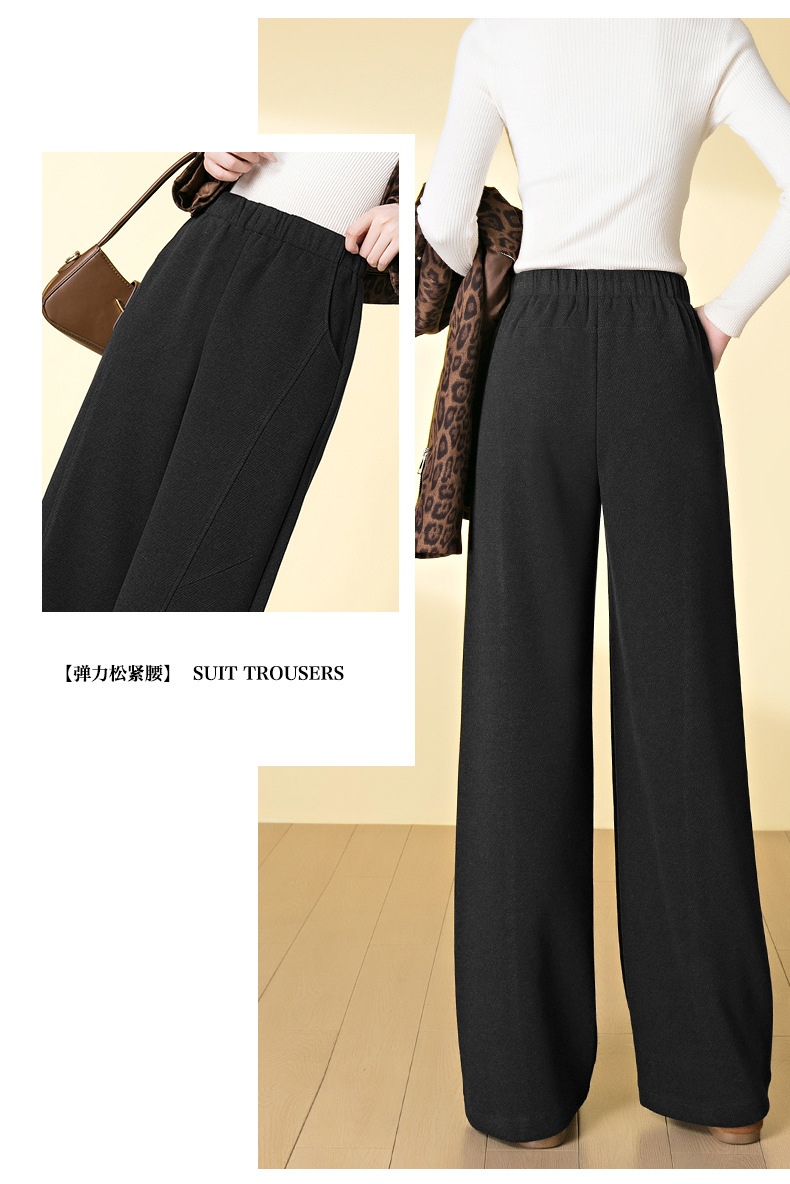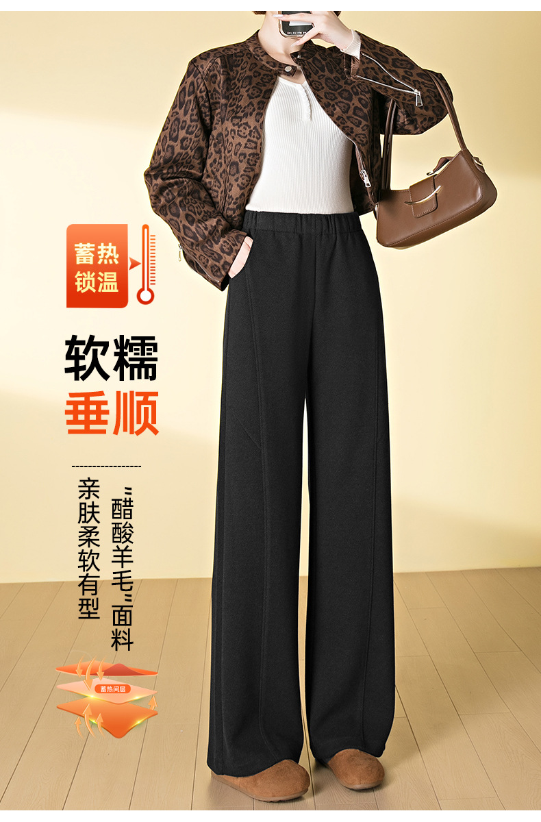 醋酸羊毛呢直筒窄版阔腿裤女2025年秋冬季新款显瘦休闲松紧腰长裤