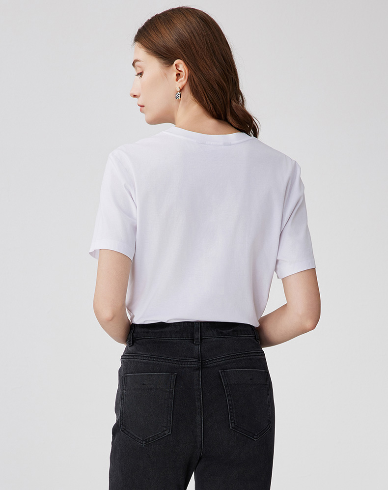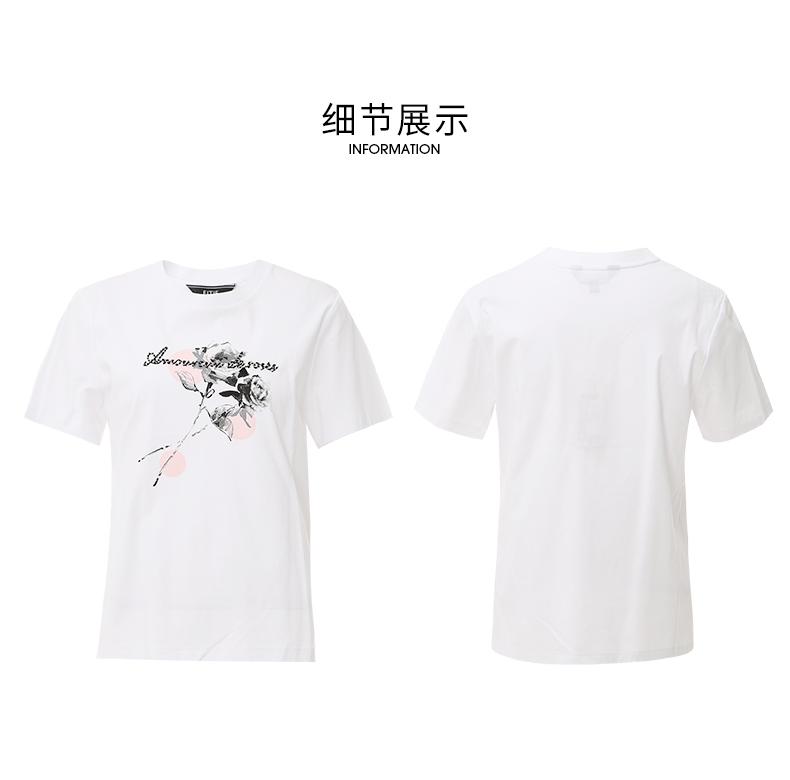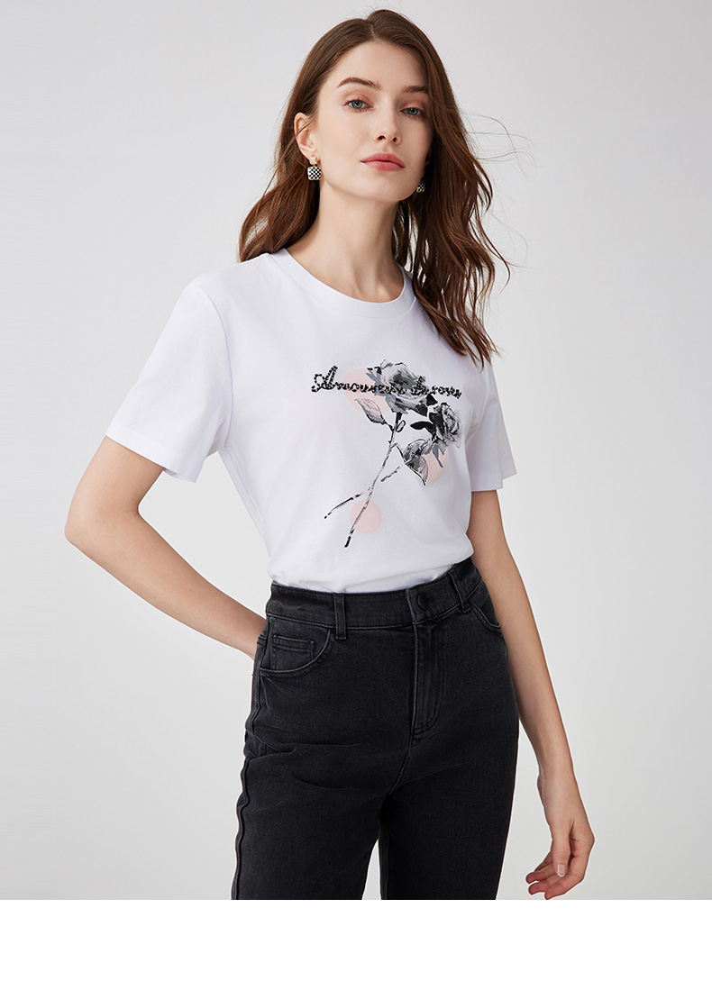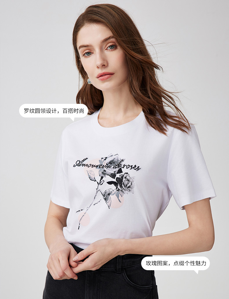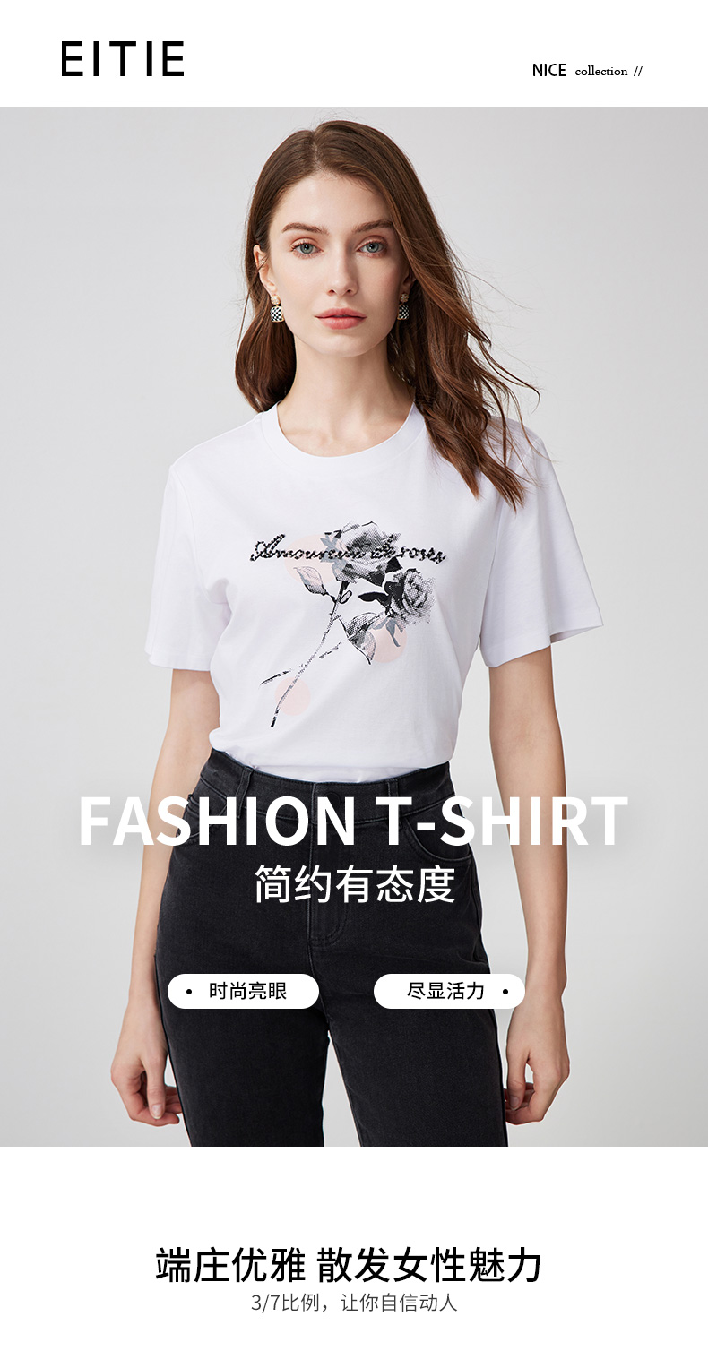 EITIE爱特爱夏季时尚百搭打底舒适圆领印花T恤女7302001