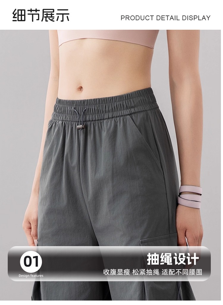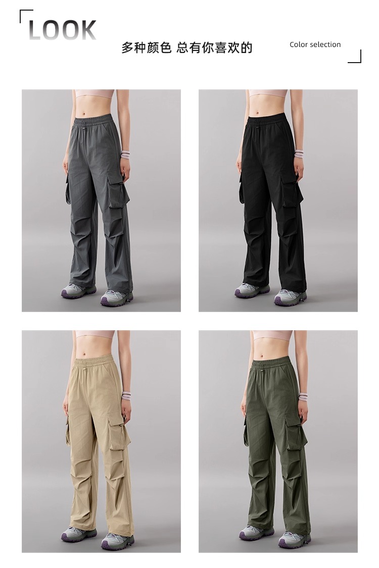 跃牌【美西西系列】美式工装裤2025夏季新款高腰显瘦阔腿休闲登山速干薄款健身长裤女CK-9938