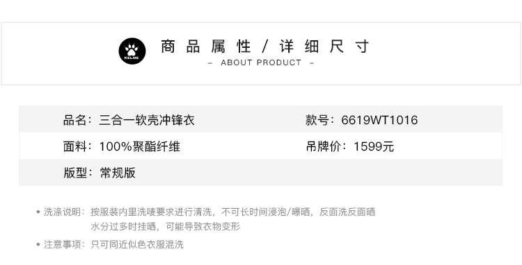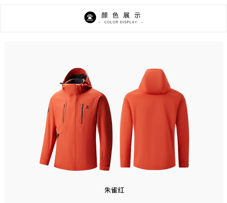 卡尔美男士三合一冲锋衣(软壳内胆)6619WT1016