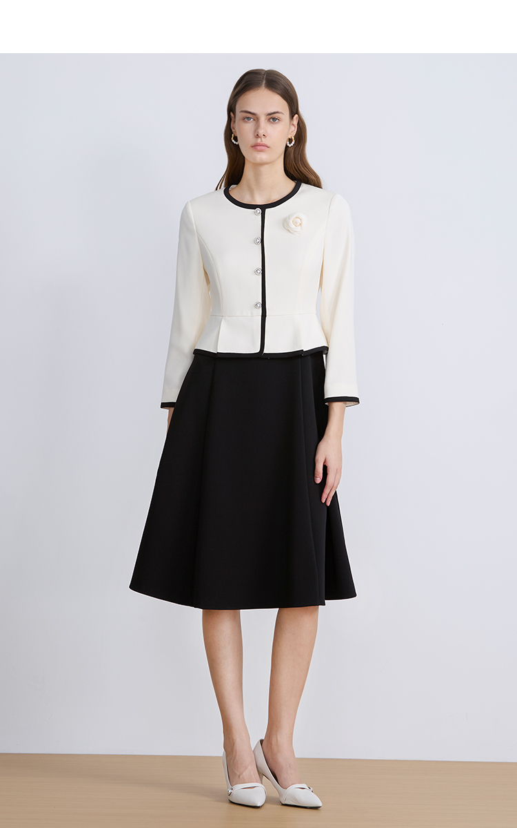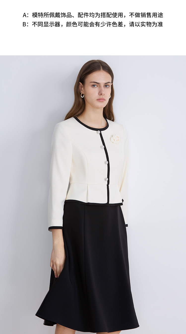 【早秋连衣裙】EITIE爱特爱精致小香风假两件优雅气质2025秋新款连衣裙C2507824