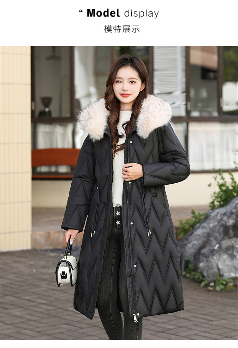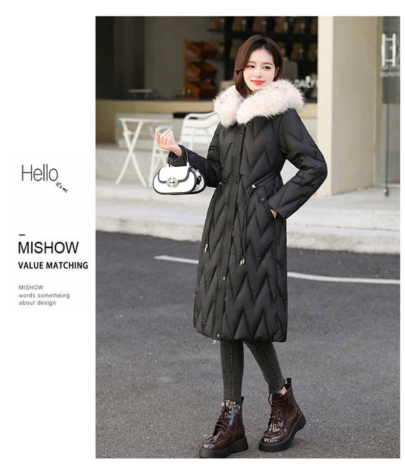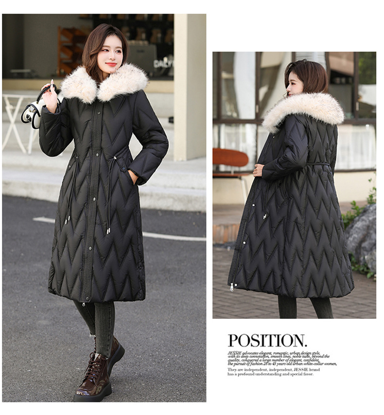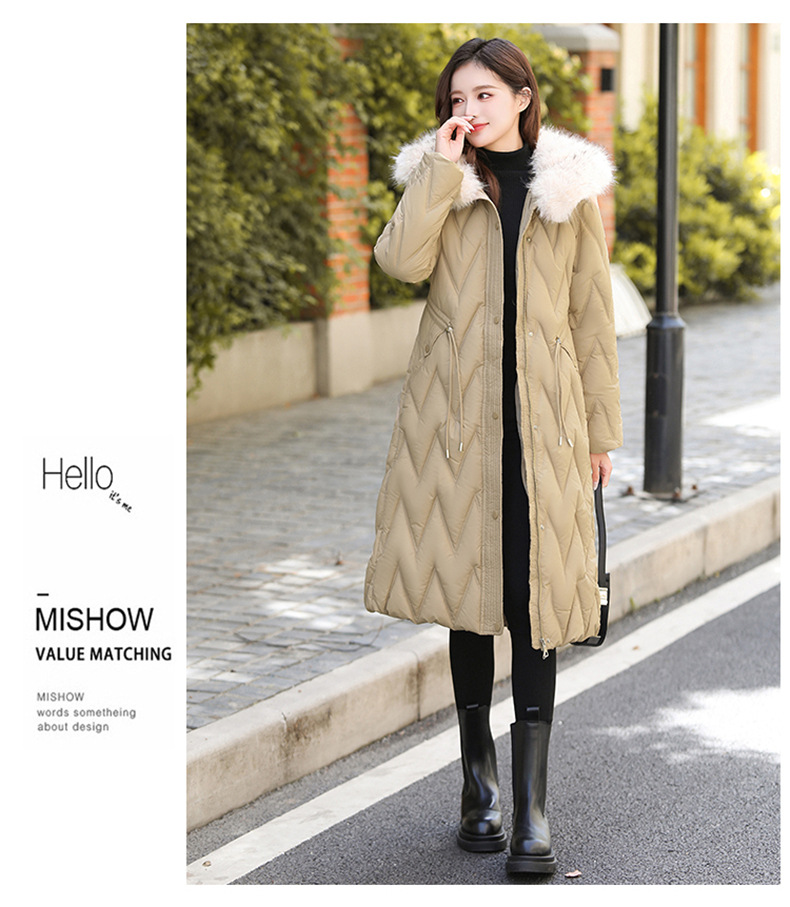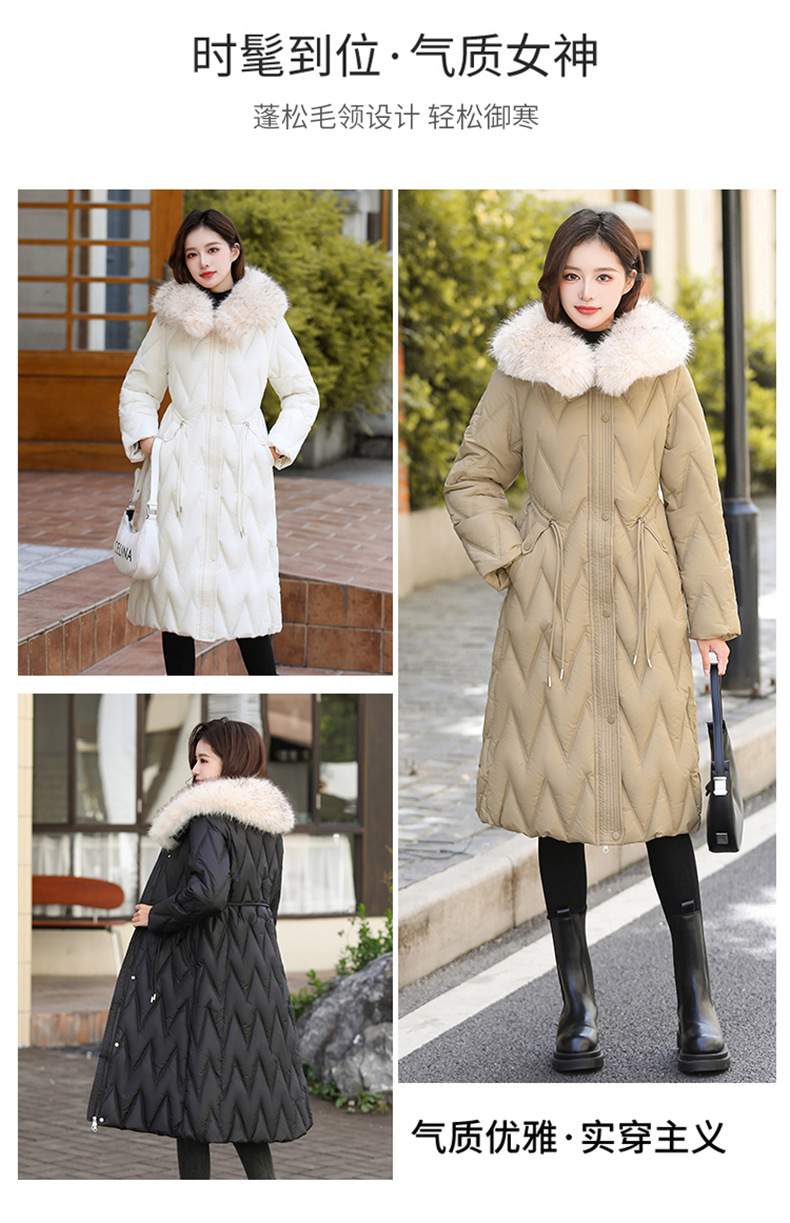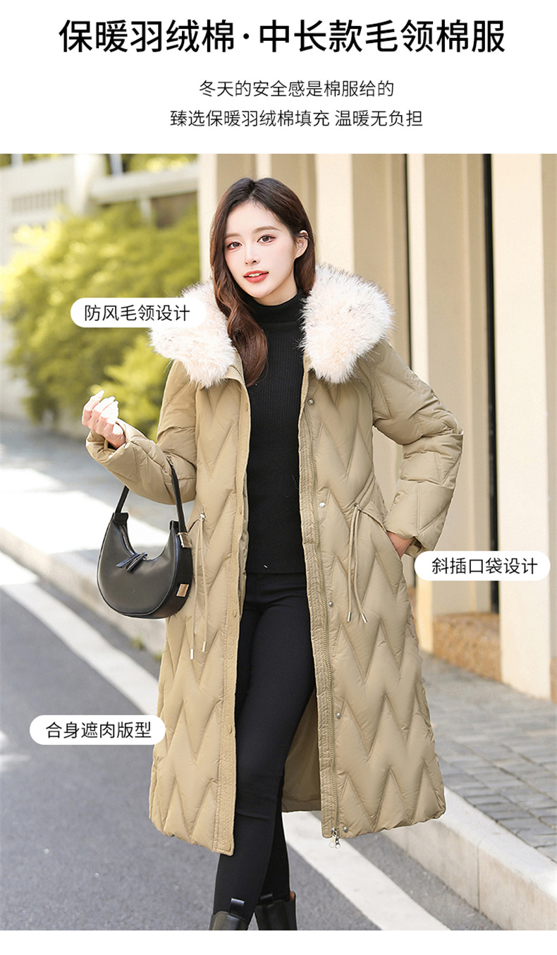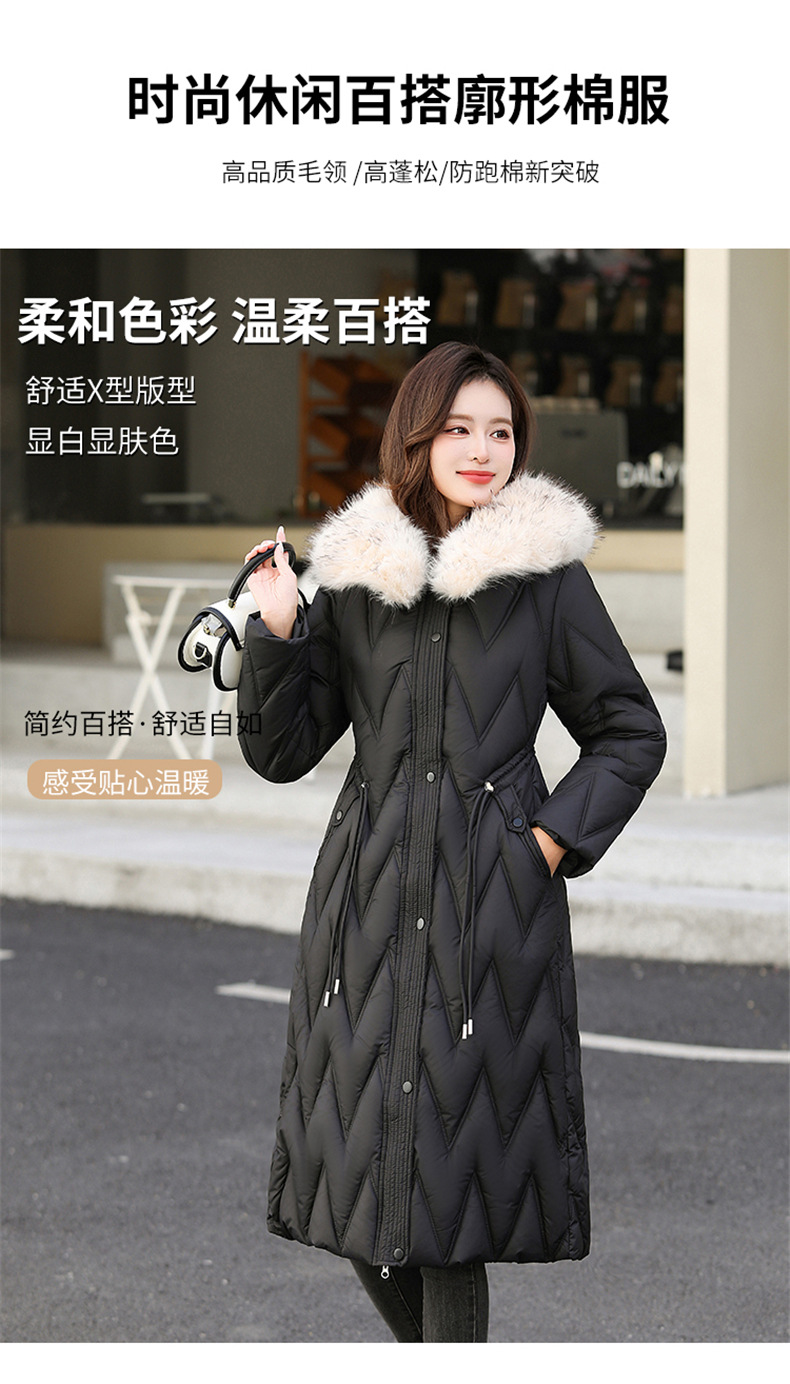 雀说冬季新款长款收腰连帽大毛领时尚百搭棉衣棉服外套ALW8082