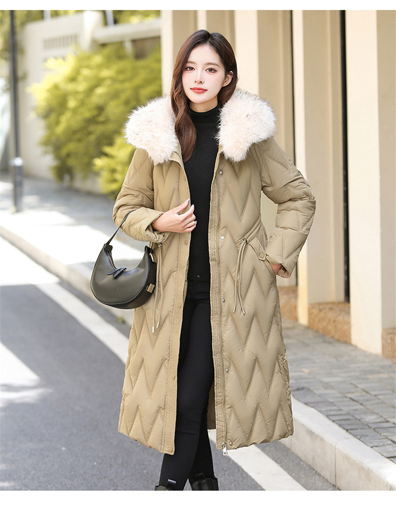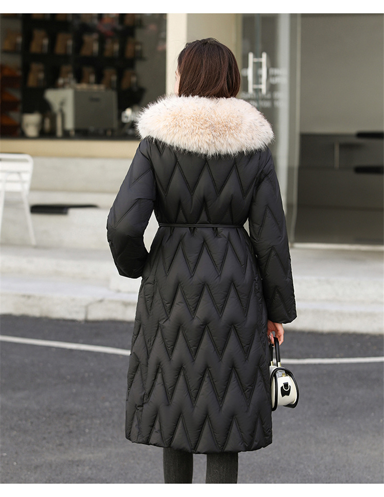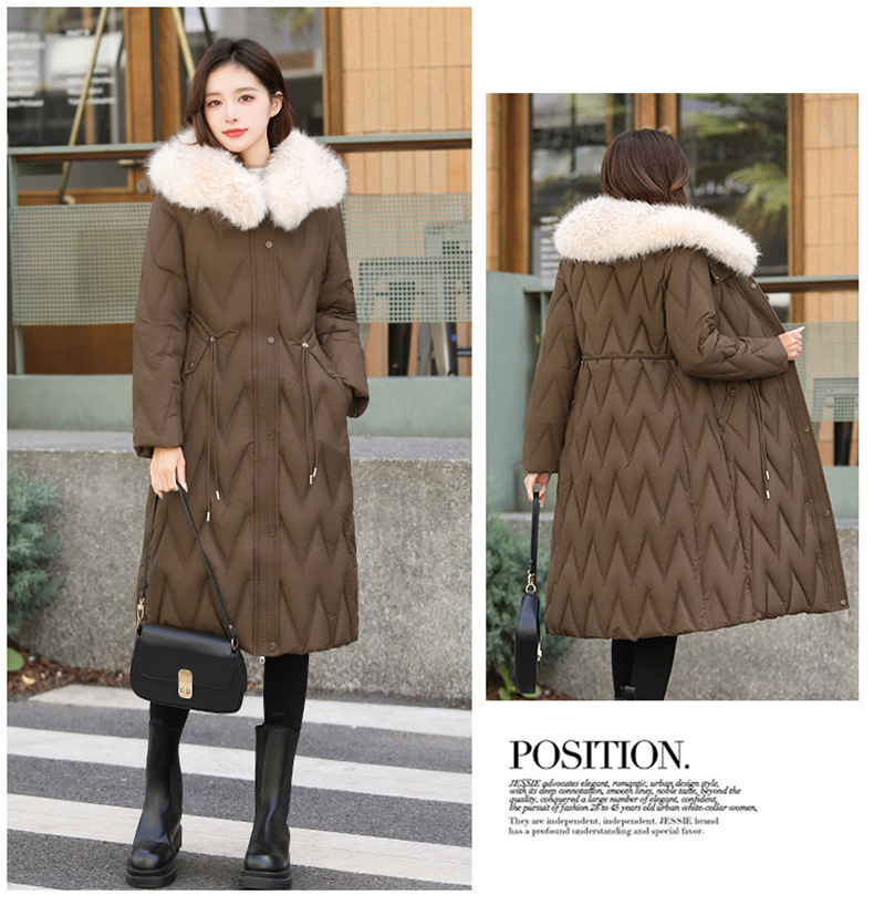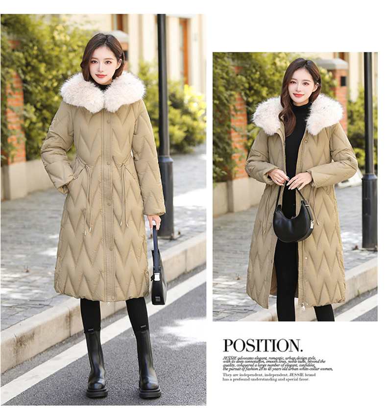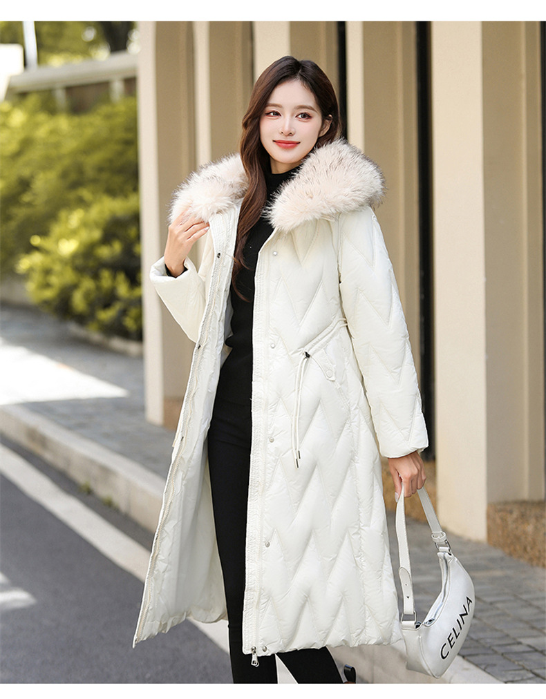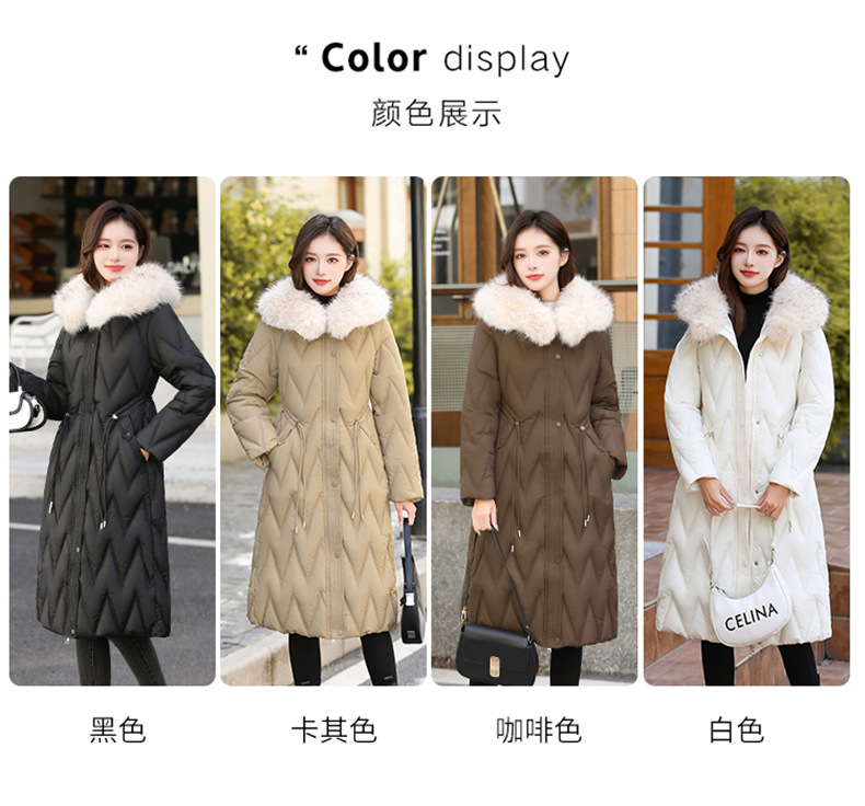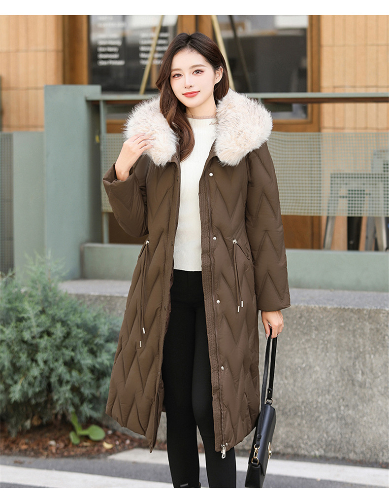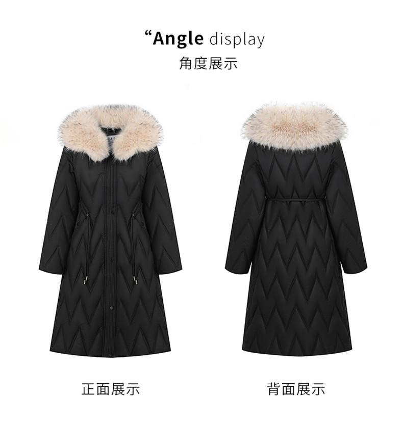 雀说冬季新款长款收腰连帽大毛领时尚百搭棉衣棉服外套ALW8082