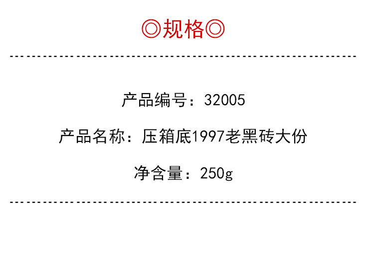 茶香记 压箱底1997老黑砖 安化黑茶 年份老茶 仓储干净 传统工艺 甜醇顺滑 入口即化