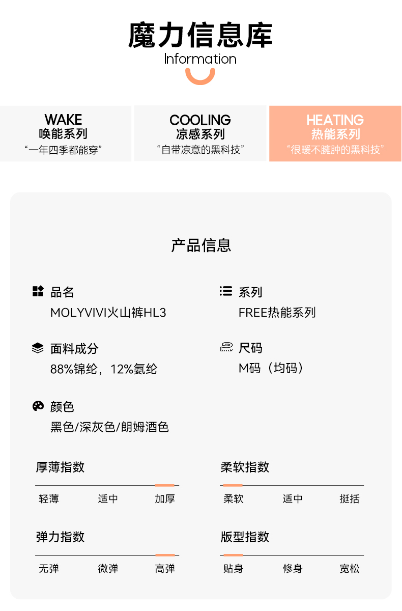 【蓄热保暖】MOLYVIVI火山裤HL3纤腰瘦体柔韧高弹助力舒展提臀美体高弹丝网印花发热更保暖