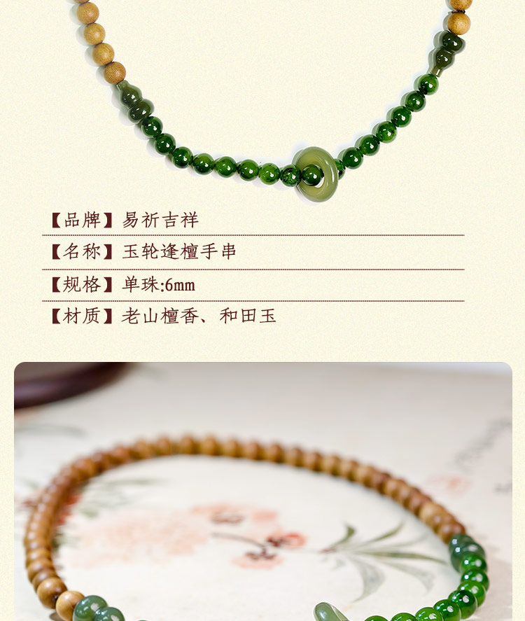 易祈吉祥五行补木系列老山檀香手链和田玉饰品送礼手串礼物