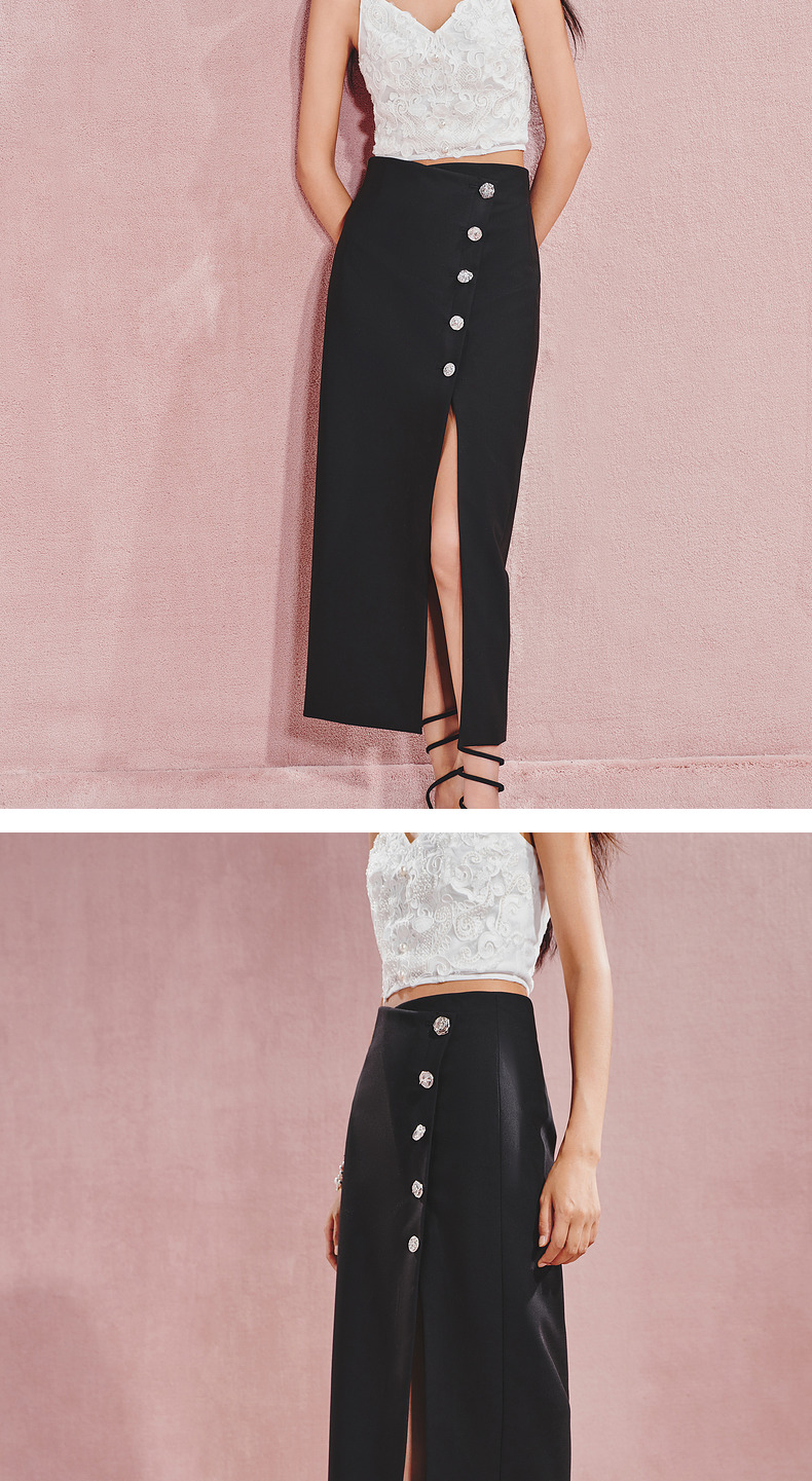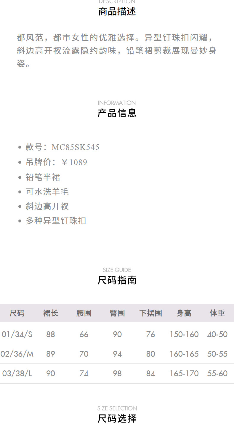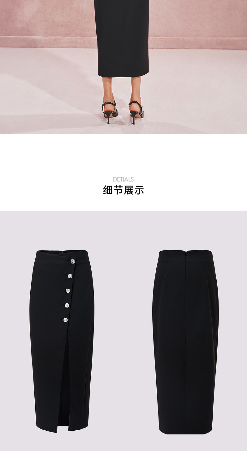 玛克门店发货:MAXRIENY*都市感钉珠扣开衩半裙(货号:MC85SK545)