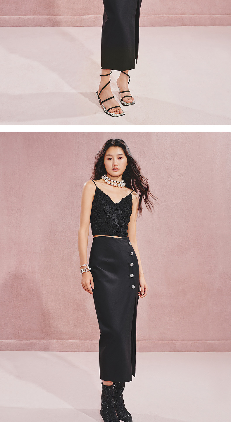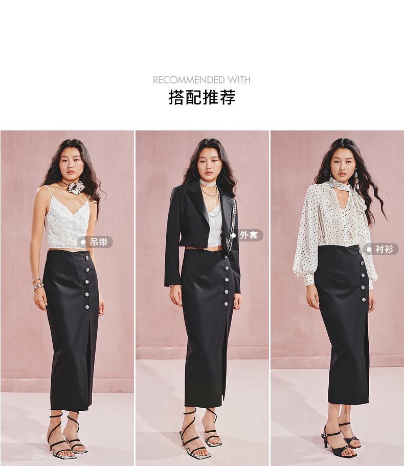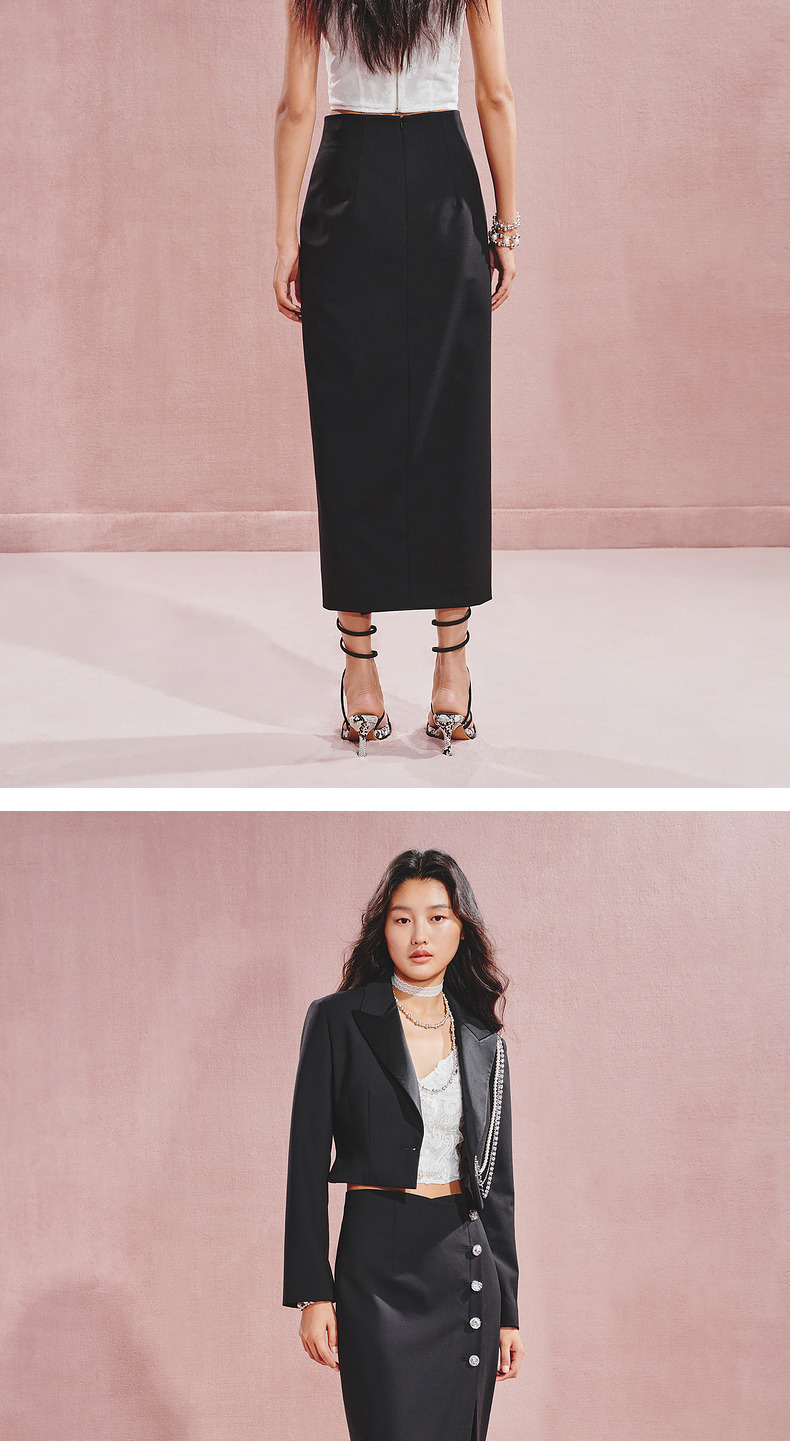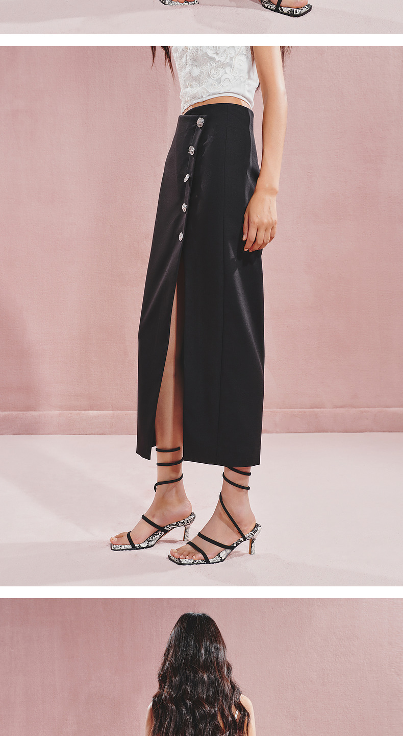 玛克门店发货:MAXRIENY*都市感钉珠扣开衩半裙(货号:MC85SK545)