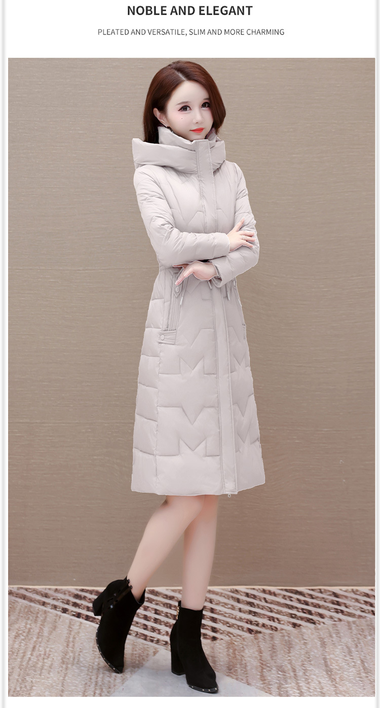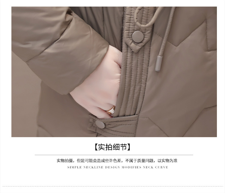 QYMXQD-6D2320-L 简约长款加厚保暖羽绒服2023年冬款长袖连帽系带收腰女装鸭绒外套 商品图2