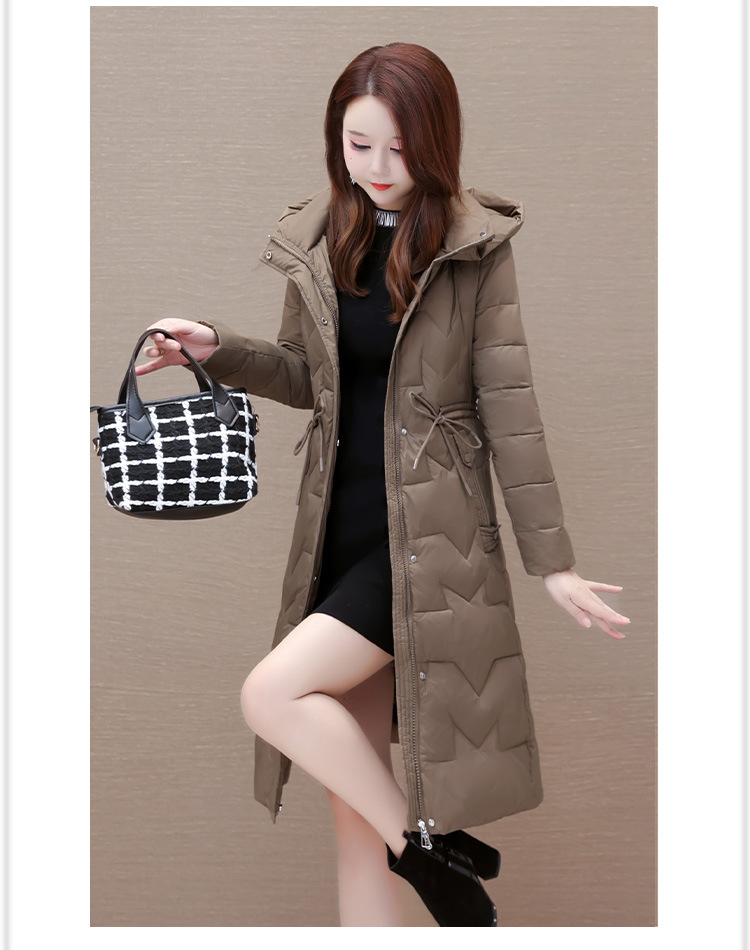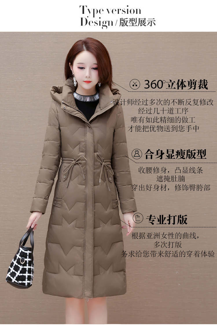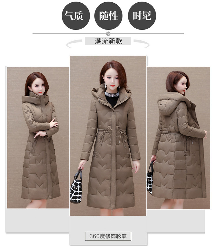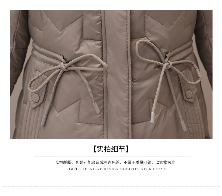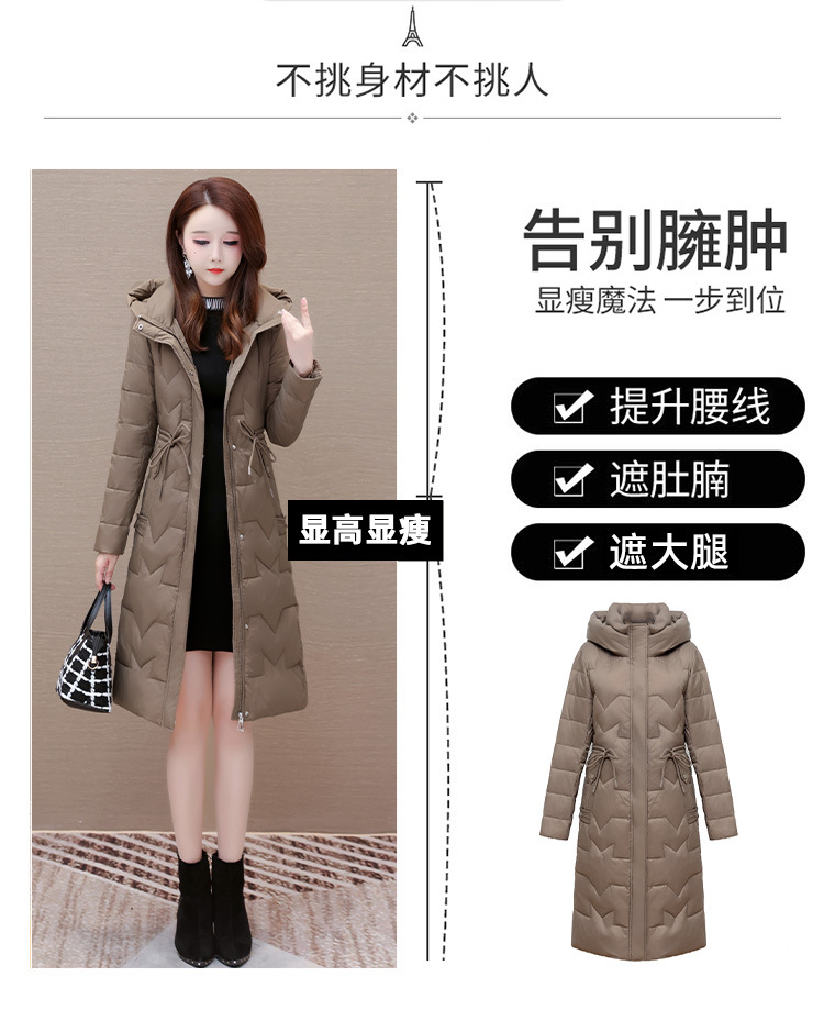 QYMXQD-6D2320-L 简约长款加厚保暖羽绒服2023年冬款长袖连帽系带收腰女装鸭绒外套 商品图3
