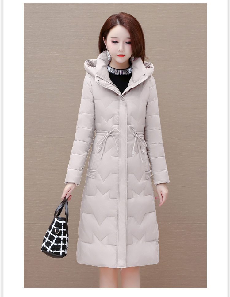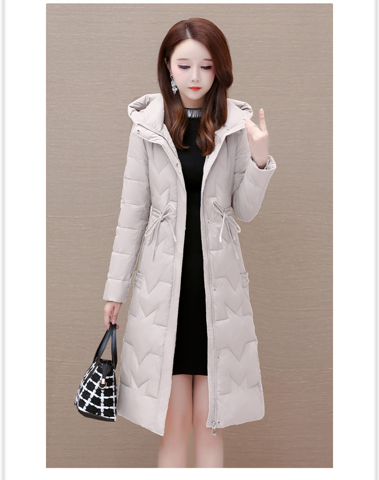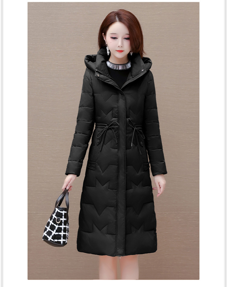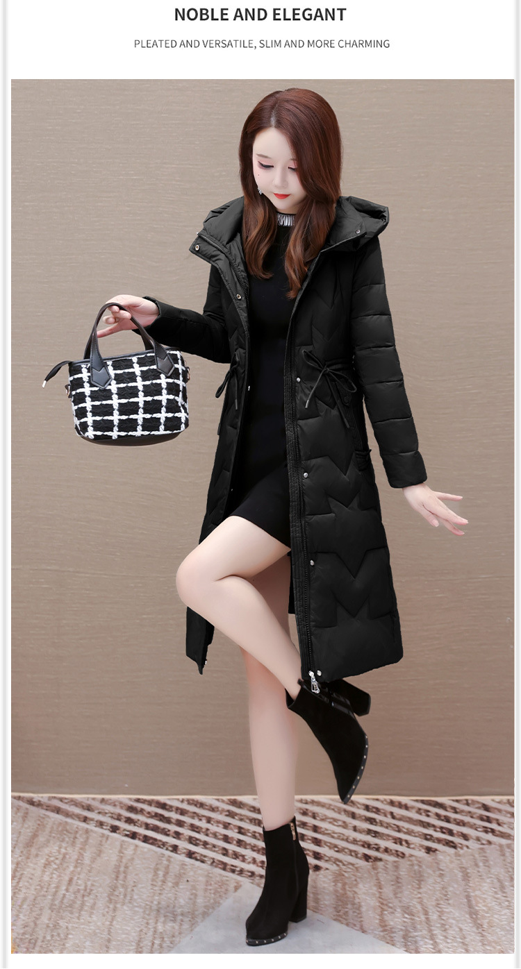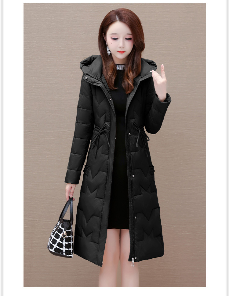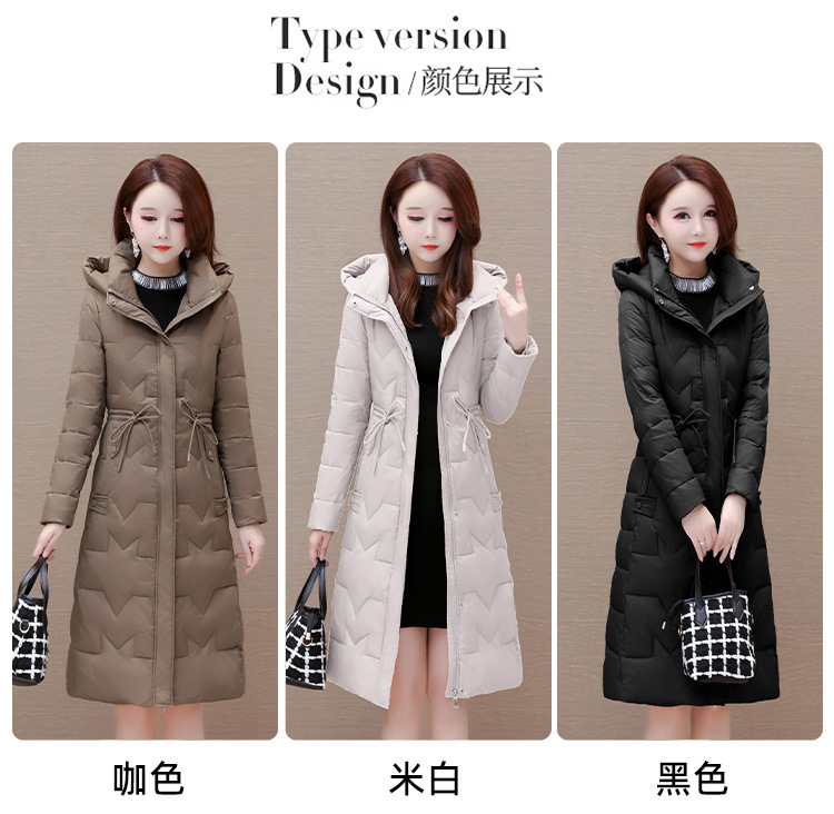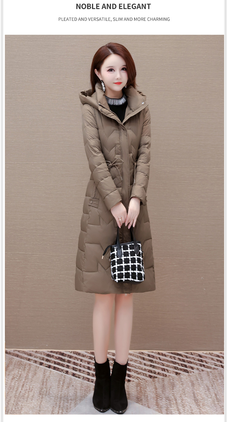 QYMXQD-6D2320-L 简约长款加厚保暖羽绒服2023年冬款长袖连帽系带收腰女装鸭绒外套 商品图0
