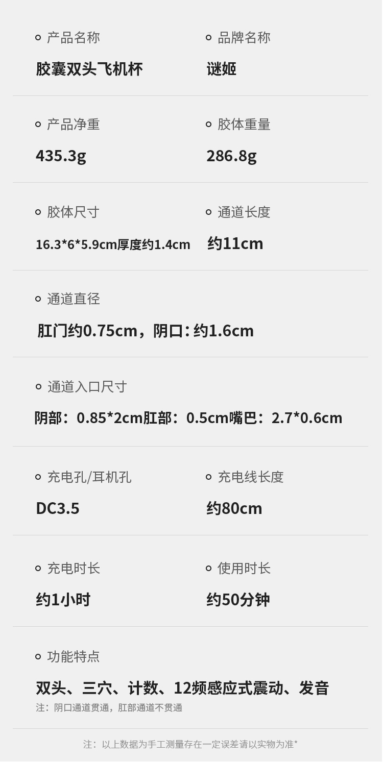 【男用器具】谜姬 胶囊双头飞机杯口阴肛三穴榨汁