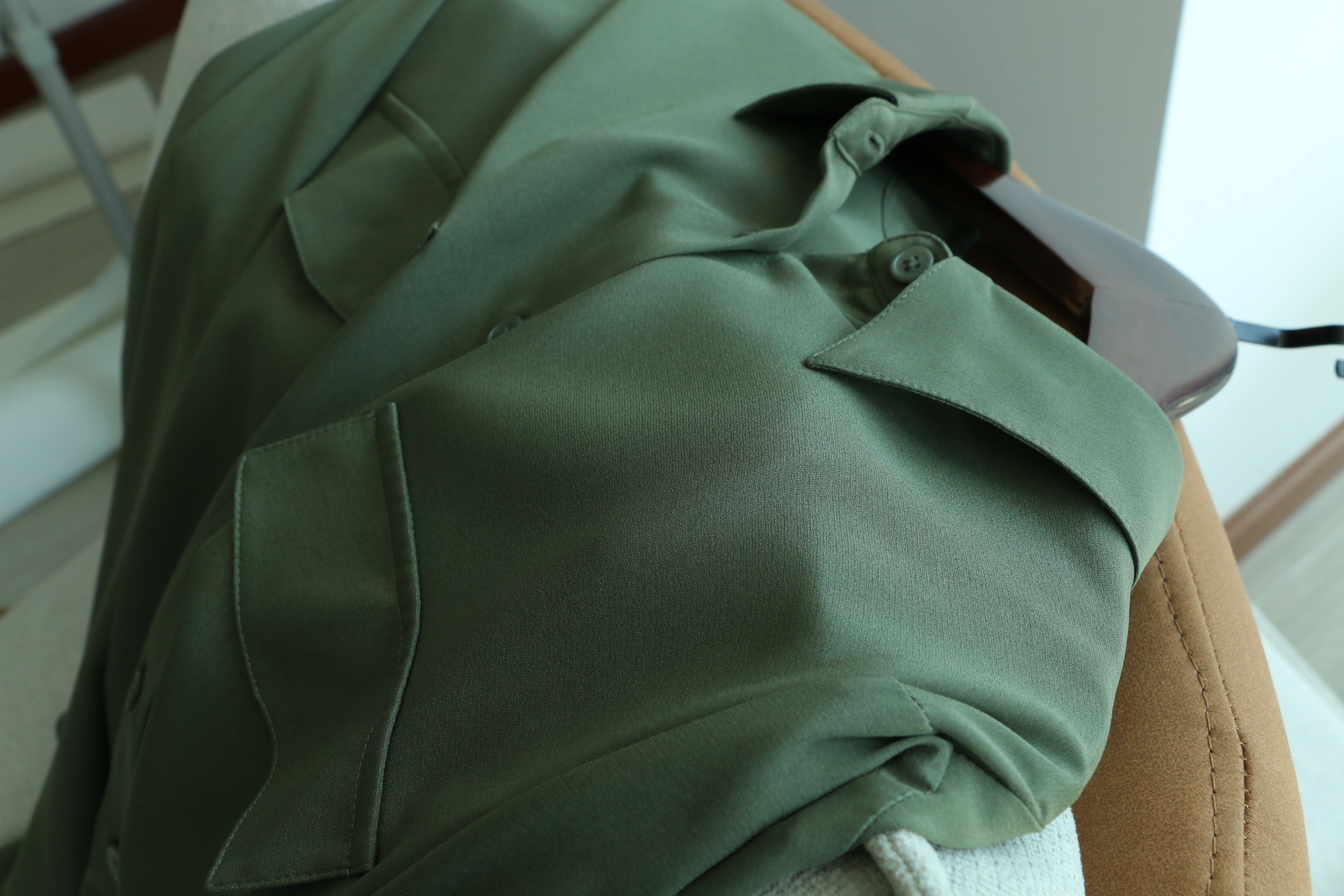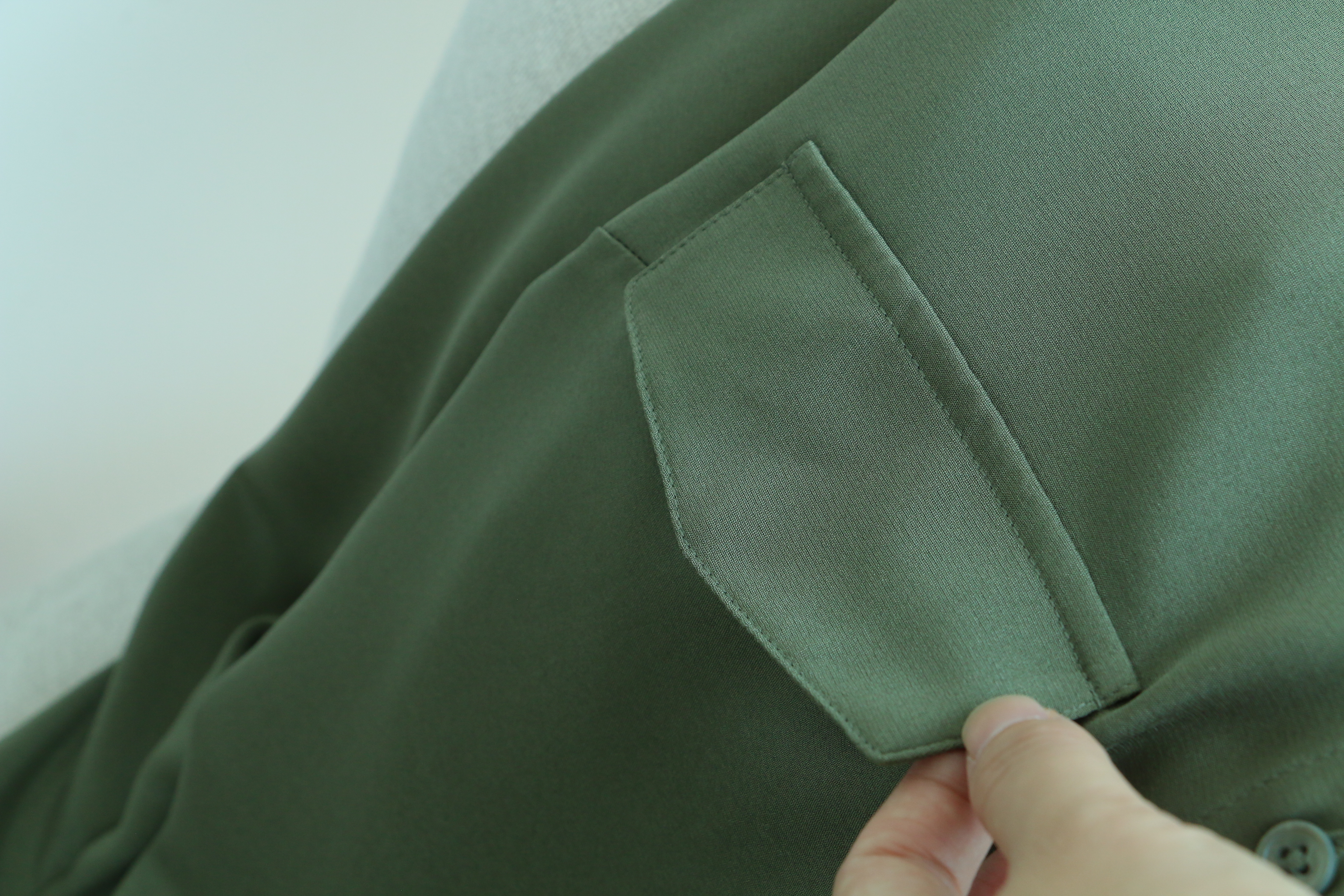 ️②口袋, 口袋边做的非常精致,双层真丝包边,但是没有真正做口袋哦, 不管什么时候都是挺括有型的,不会有真口袋耷拉下来的尴尬。