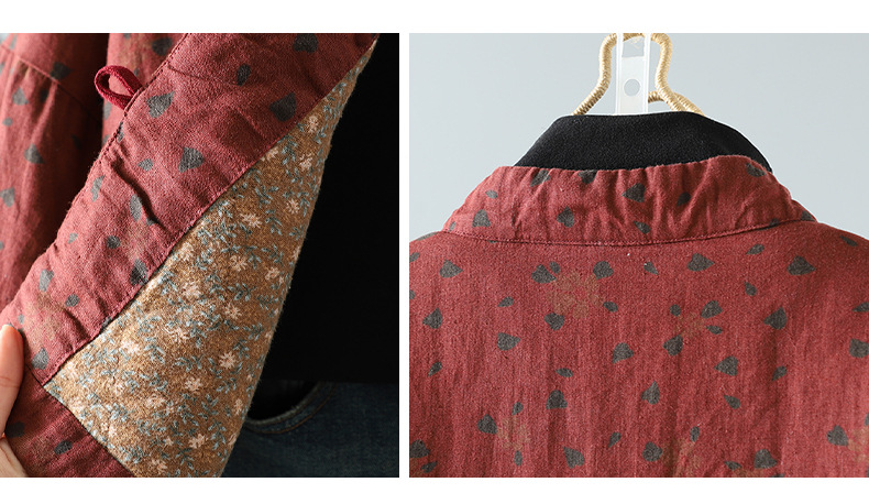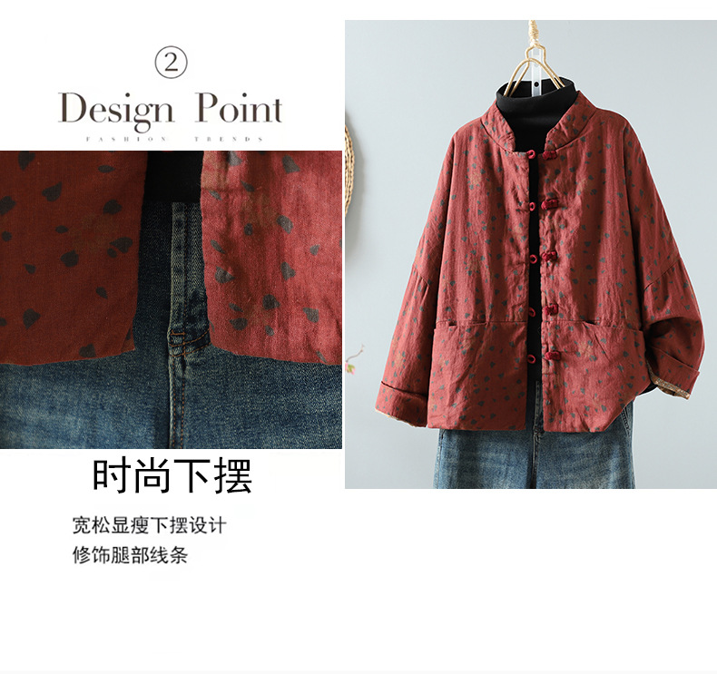 XYF6881 2025冬季款复古民族风改良棉麻文艺盘扣中式夹棉保暖盘扣棉服外套