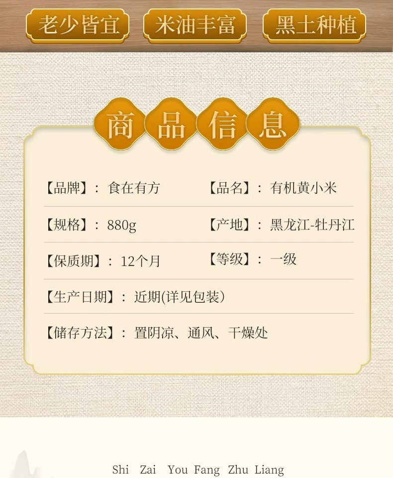 【新鲜市集】食在有方 有机黄小米 880g(保质期至2026年8月)
