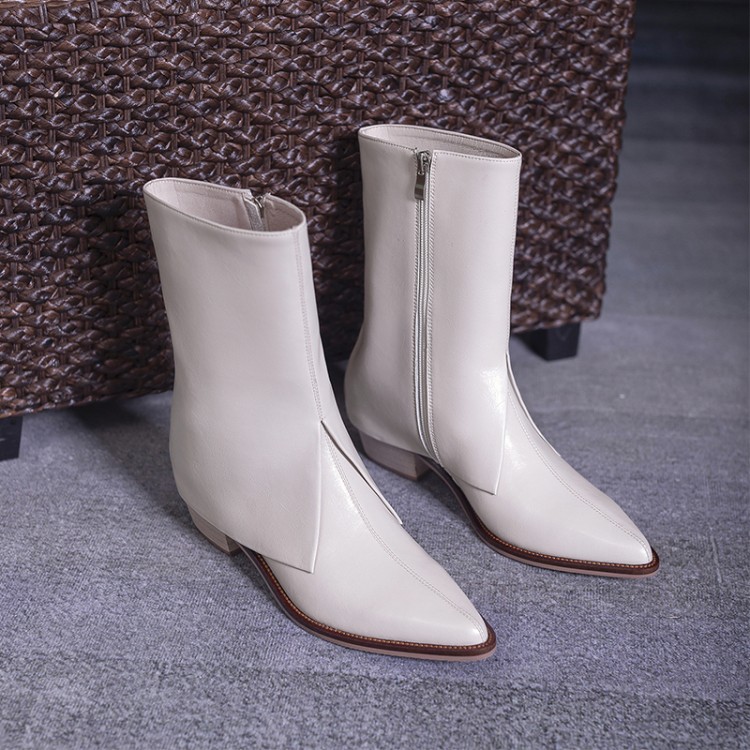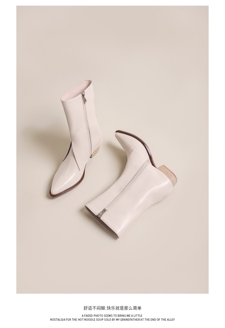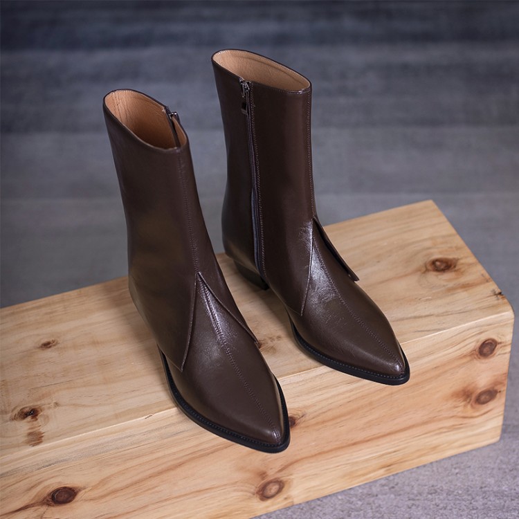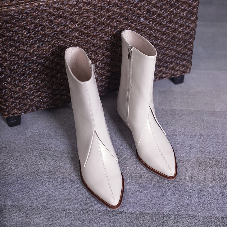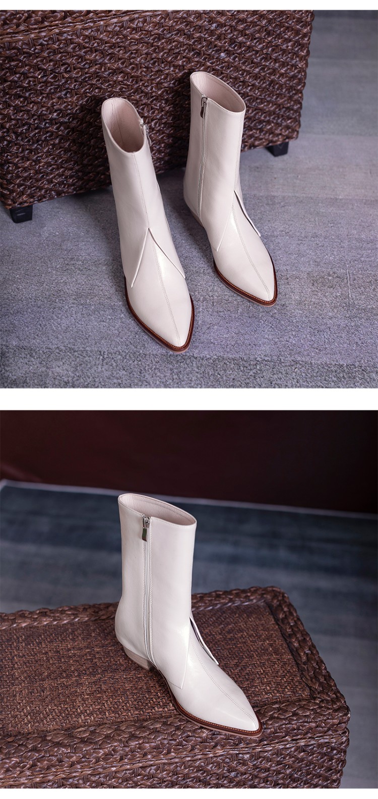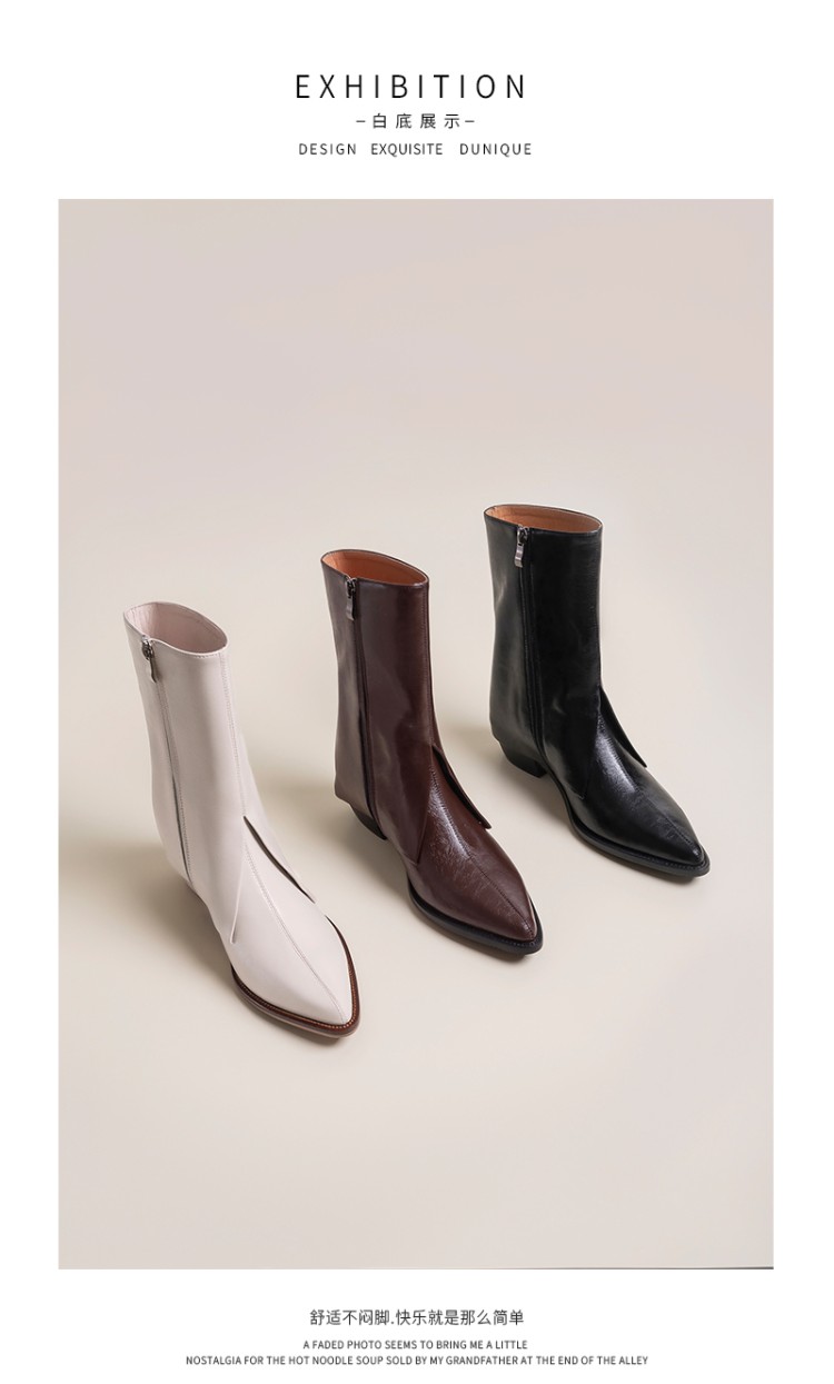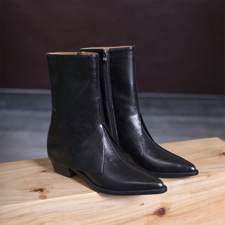 【预售5天】裤管靴女秋冬款欧美中跟短靴黑色尖头短筒靴子牛皮粗跟马丁靴168XY&A16860