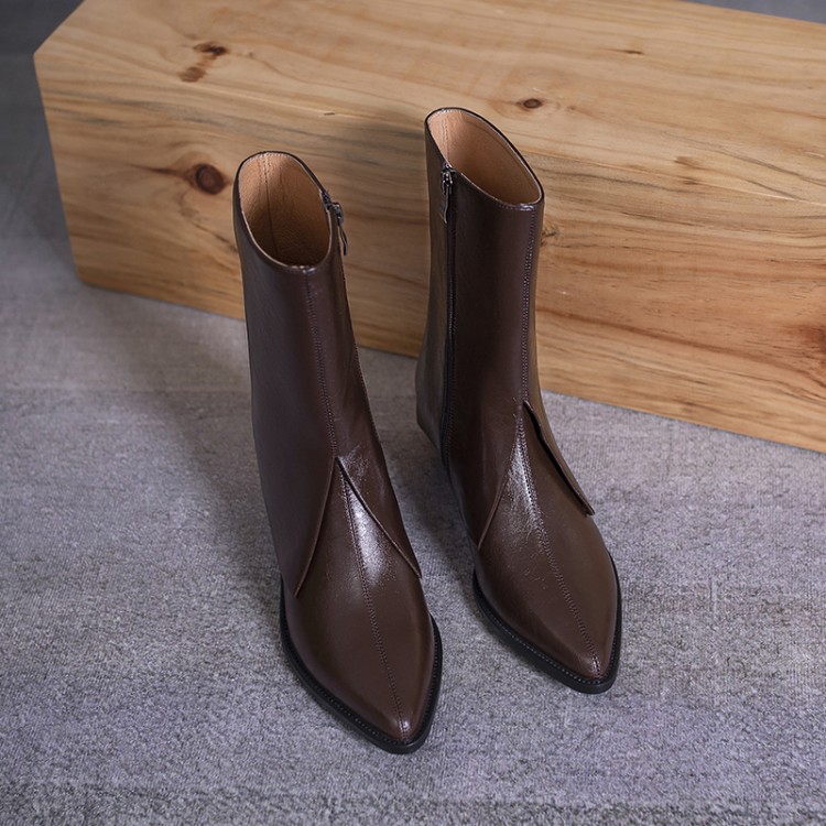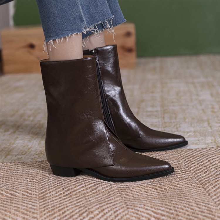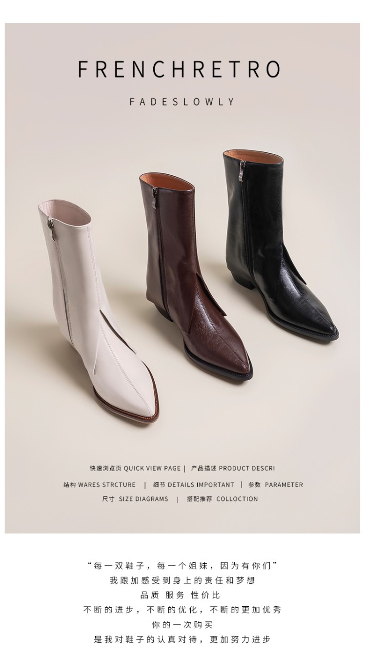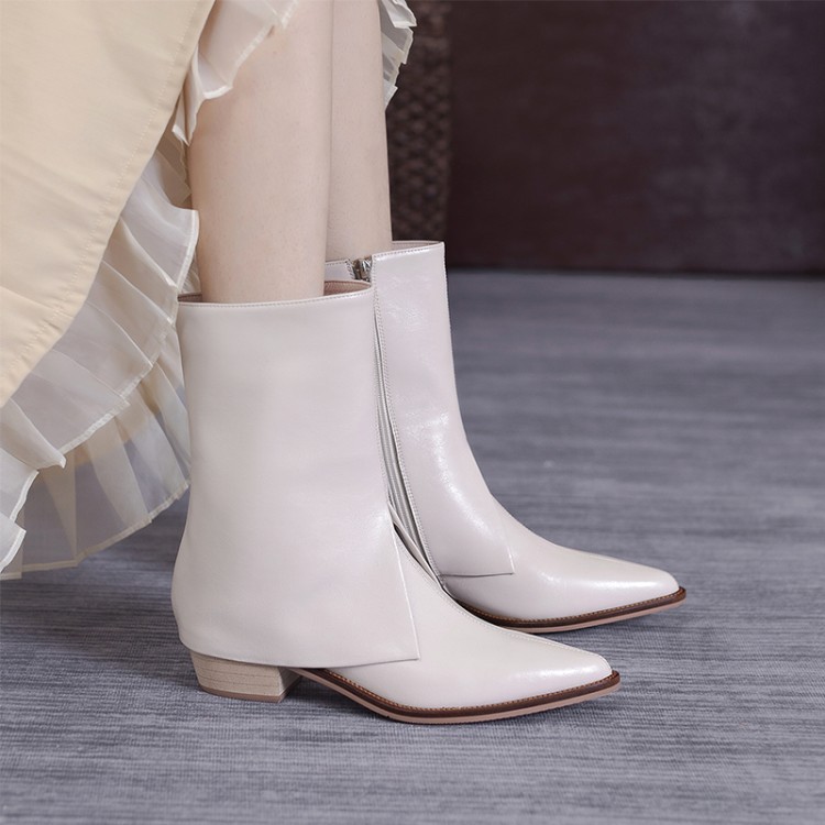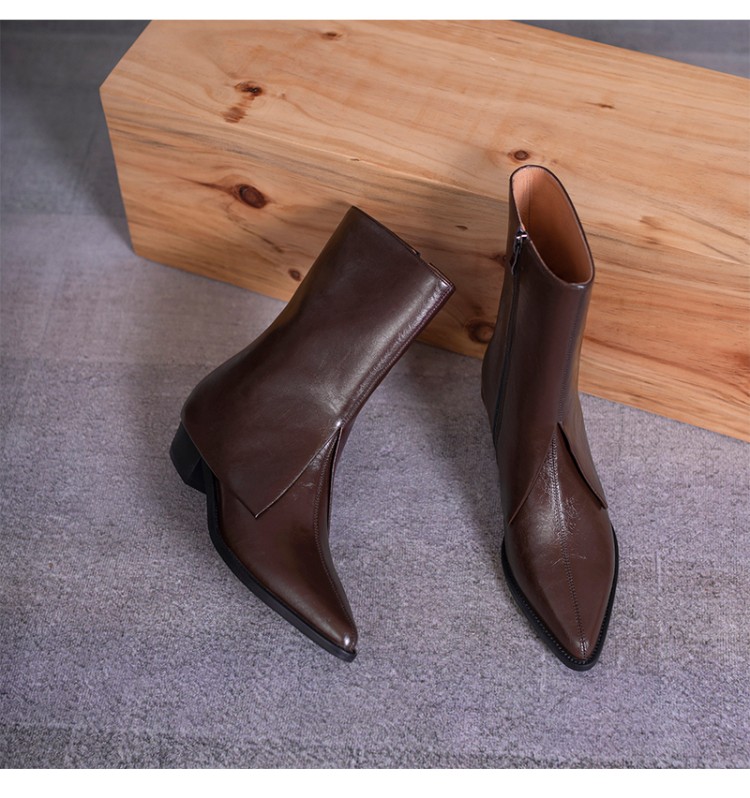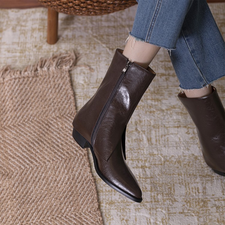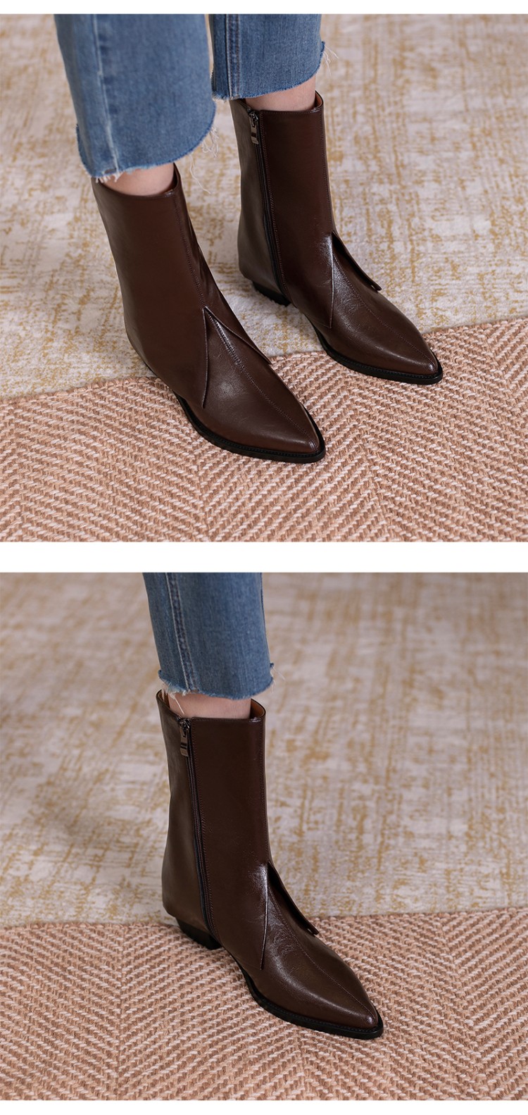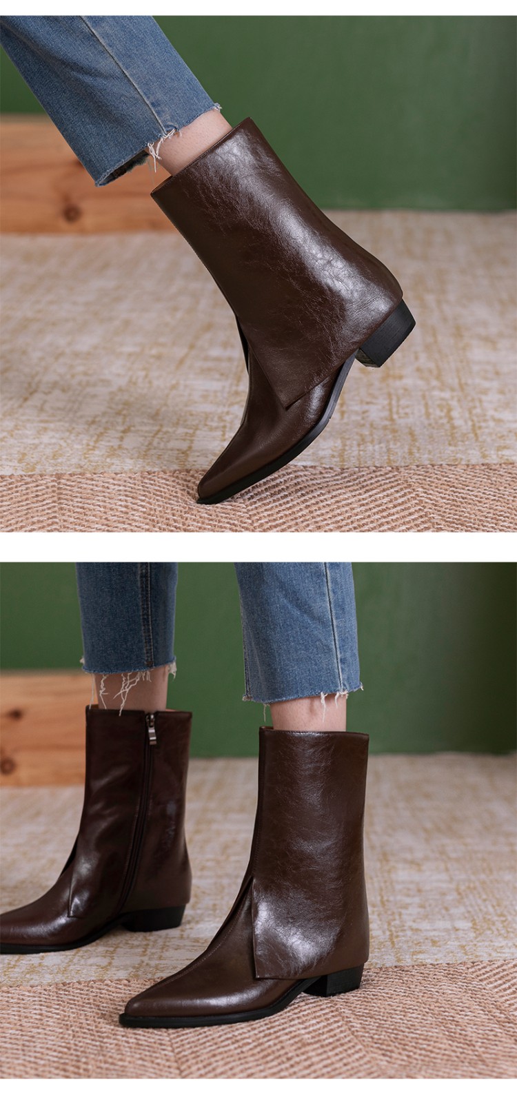 【预售5天】裤管靴女秋冬款欧美中跟短靴黑色尖头短筒靴子牛皮粗跟马丁靴168XY&A16860