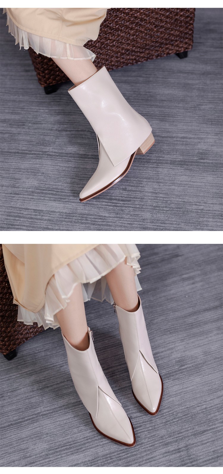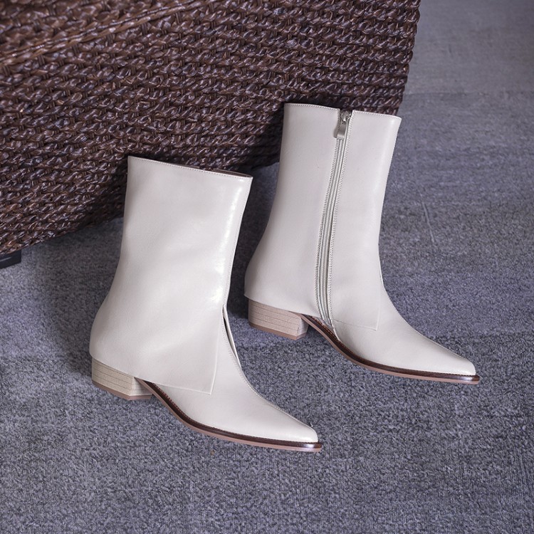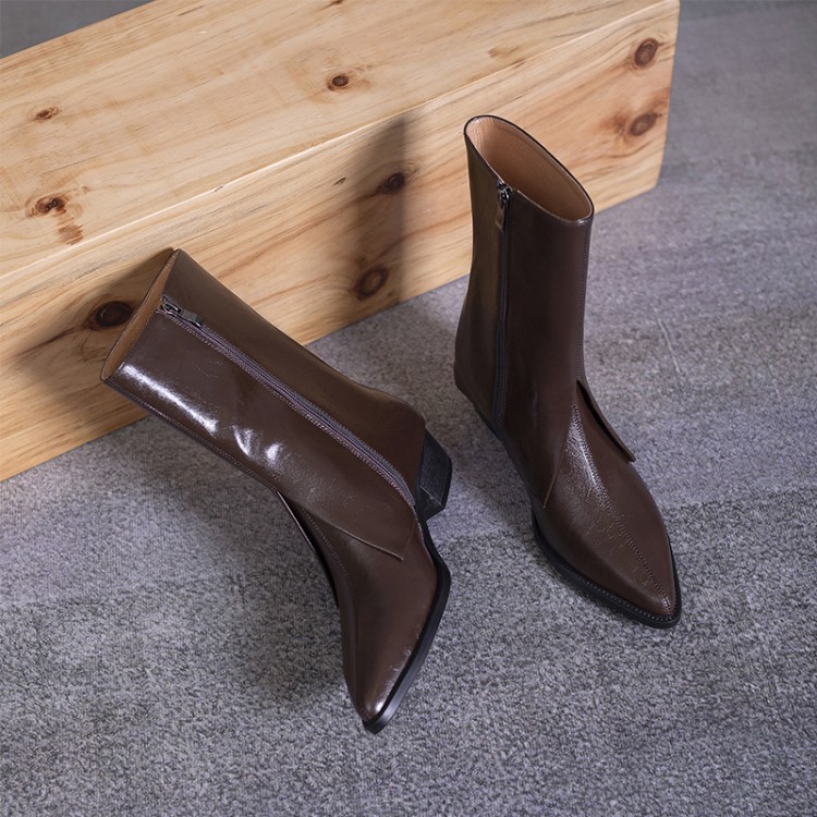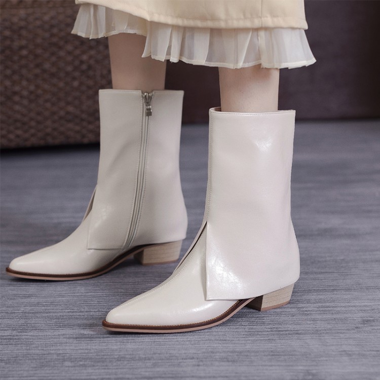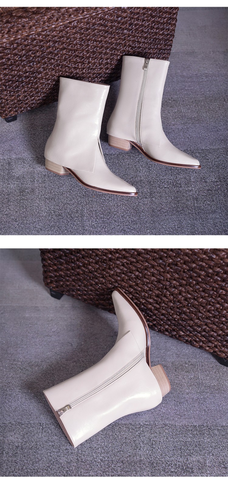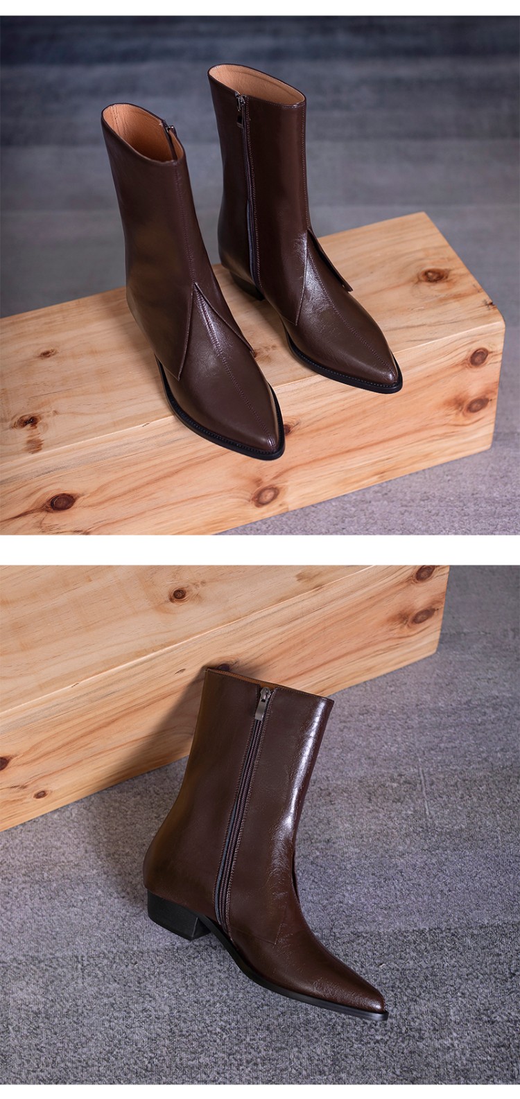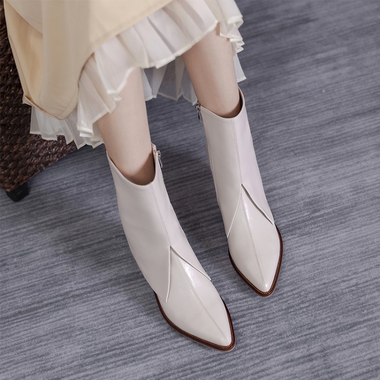 【预售5天】裤管靴女秋冬款欧美中跟短靴黑色尖头短筒靴子牛皮粗跟马丁靴168XY&A16860
