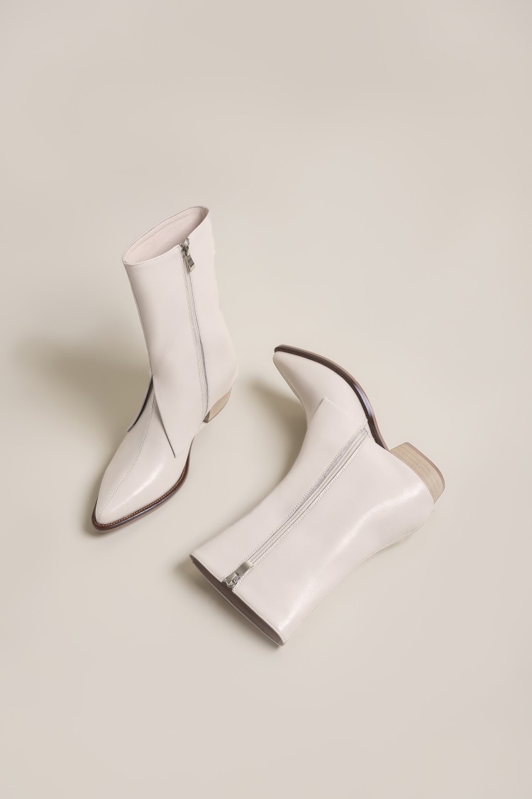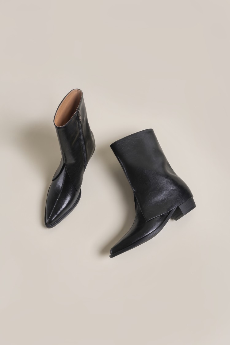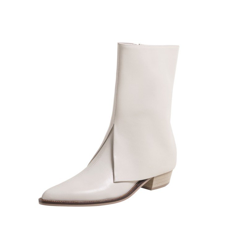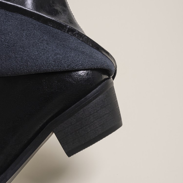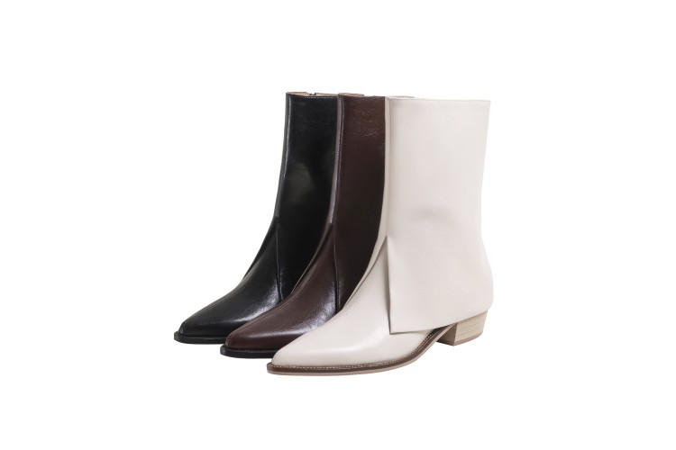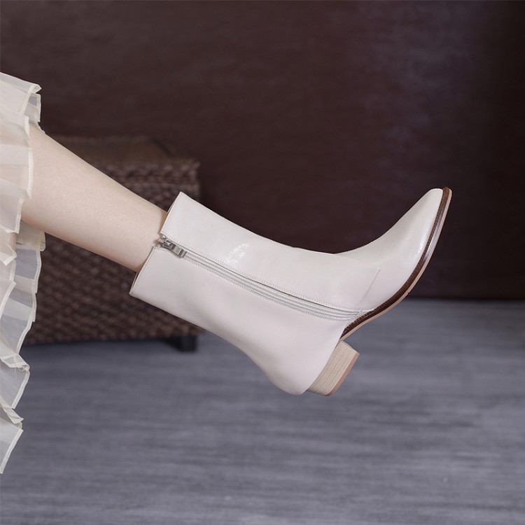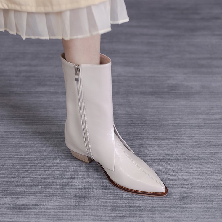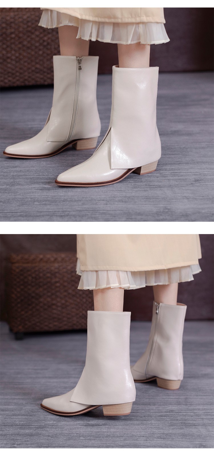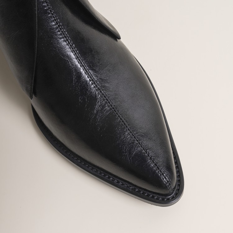 【预售5天】裤管靴女秋冬款欧美中跟短靴黑色尖头短筒靴子牛皮粗跟马丁靴168XY&A16860