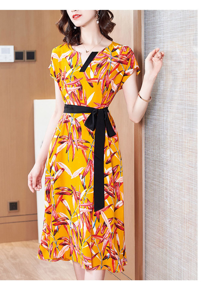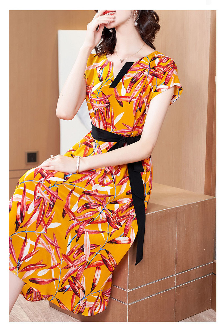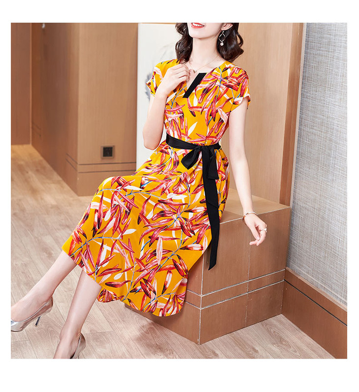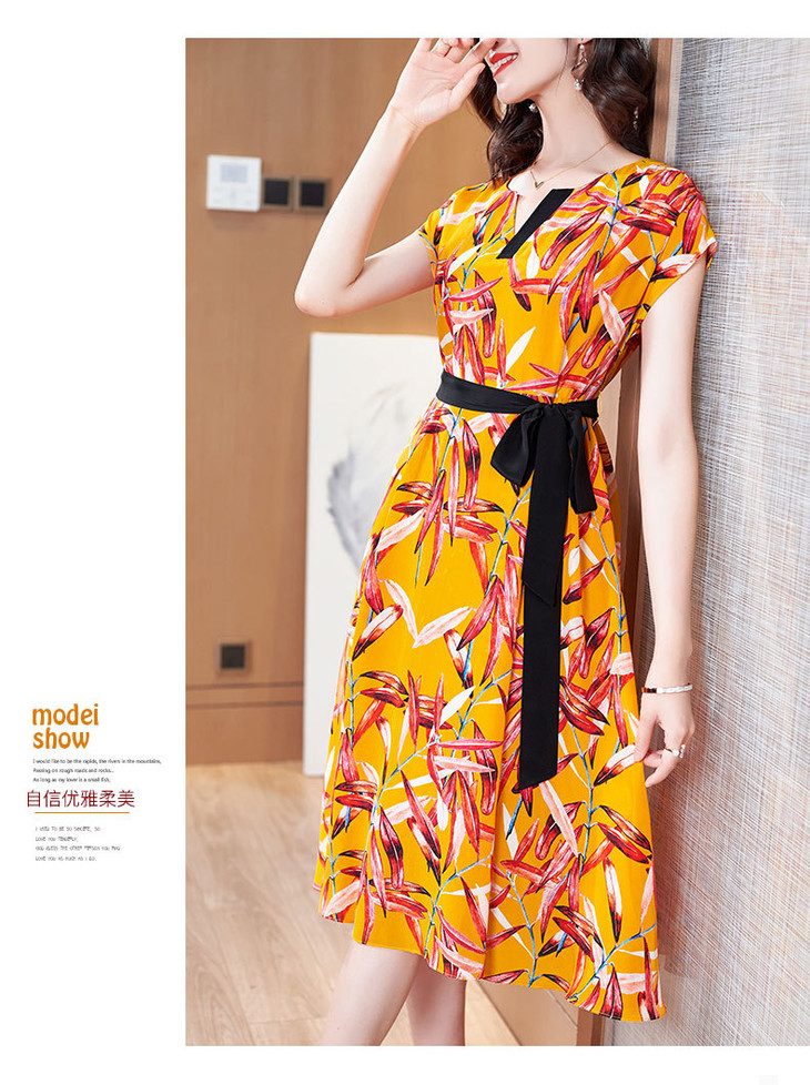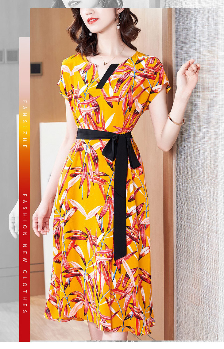 FSZ-2056新品宽松大码印花桑蚕丝连衣裙