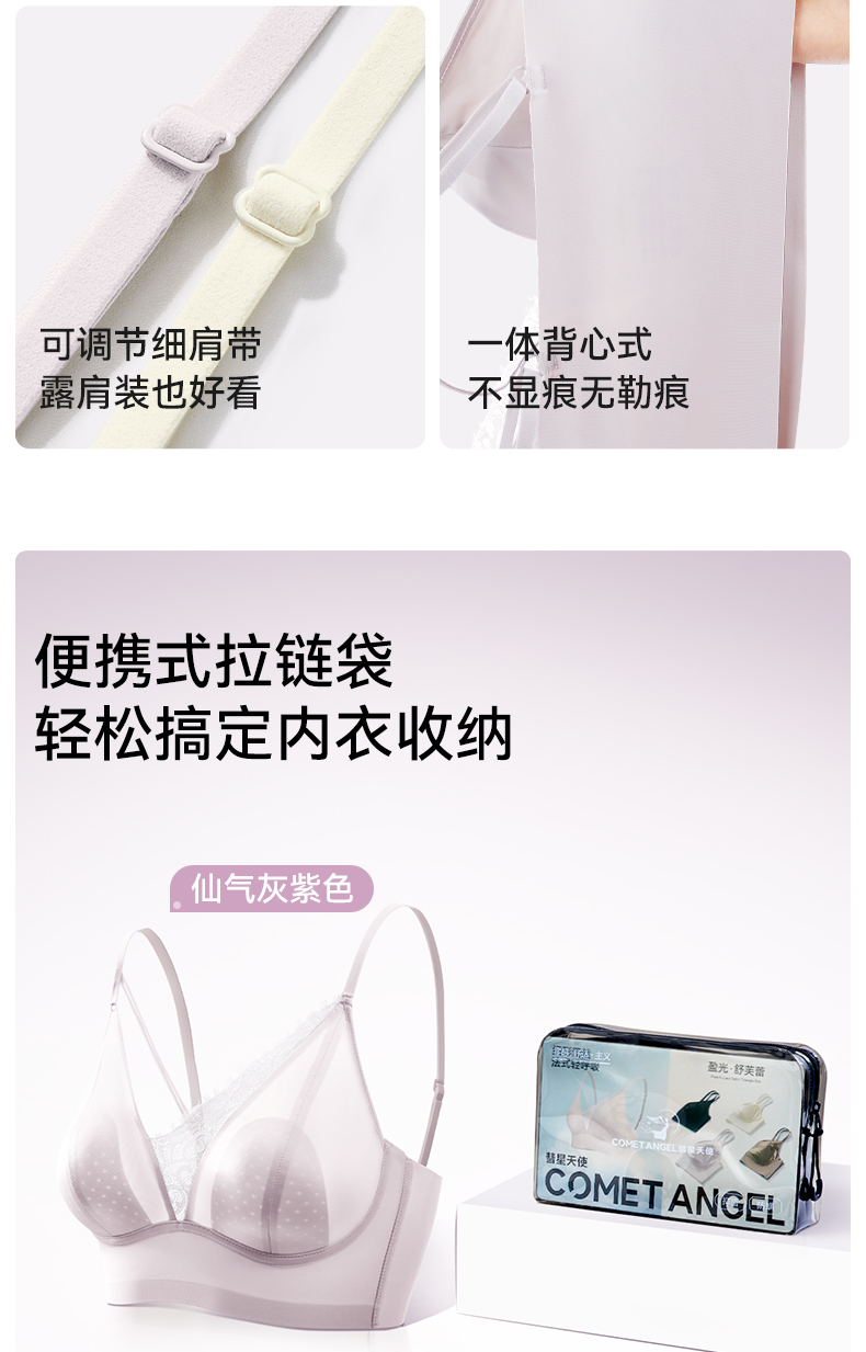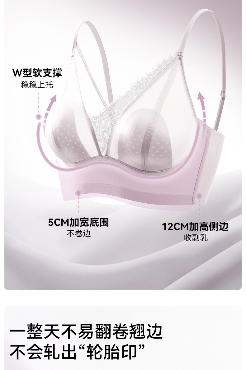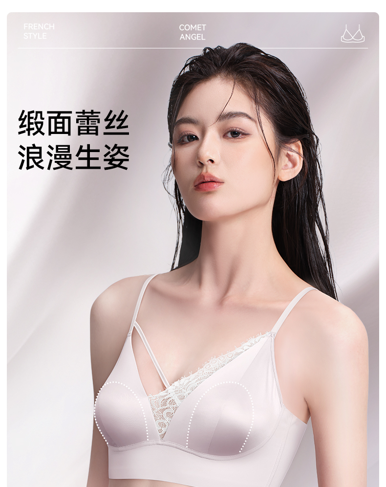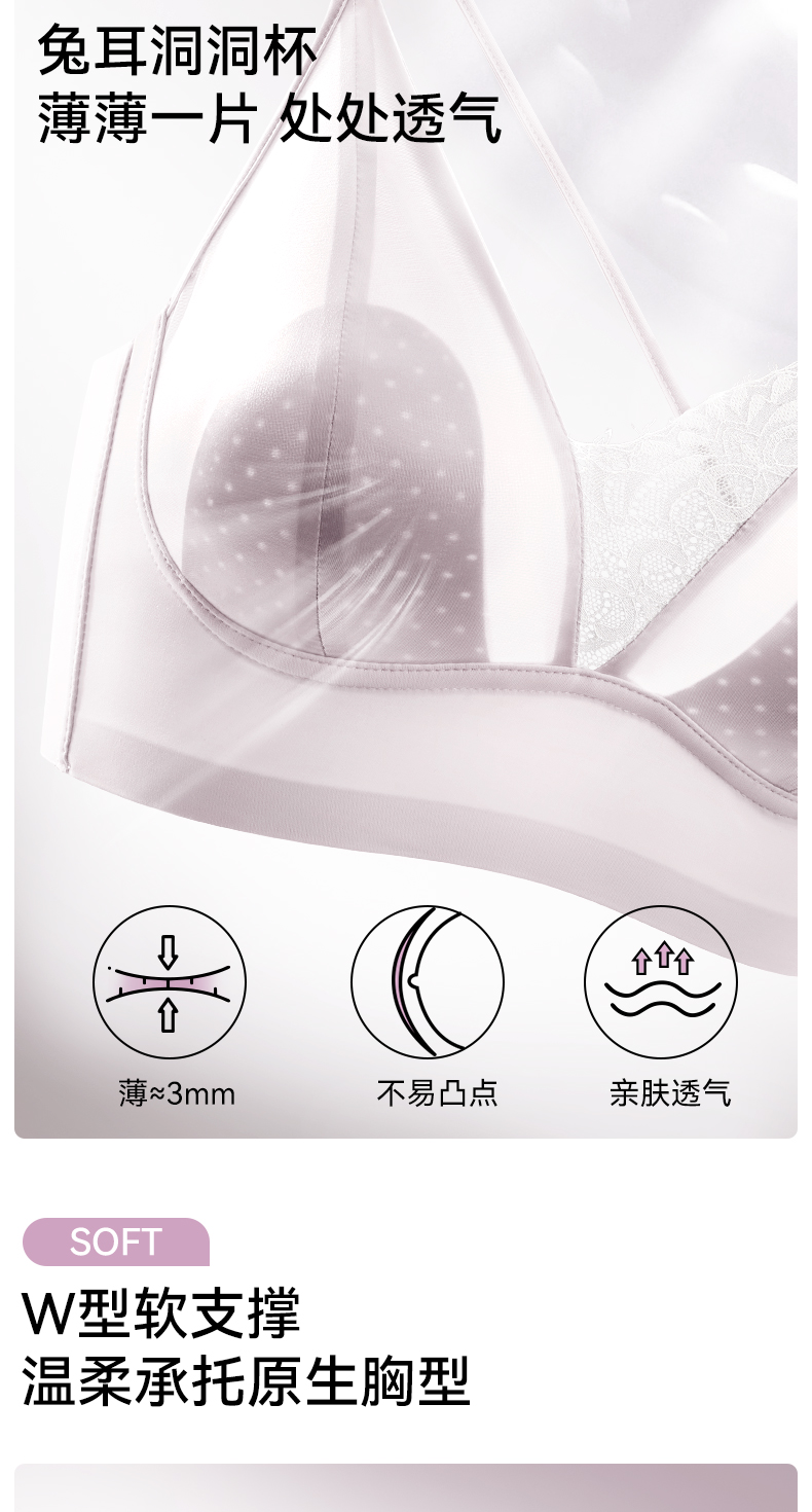 彗星天使舒芙蕾兔耳杯小胸不空大胸不勒舒适承托缎光蕾丝内衣2991#