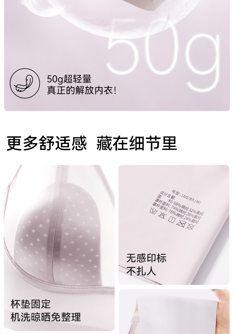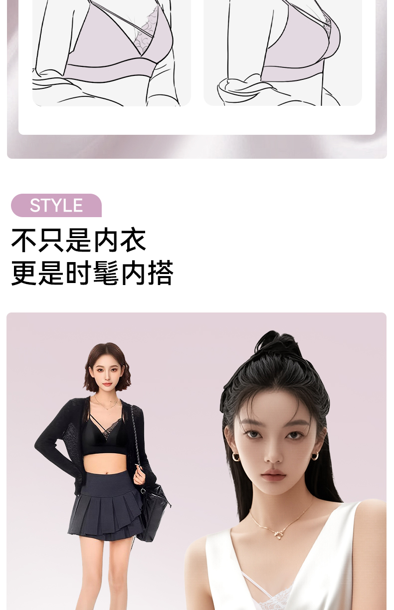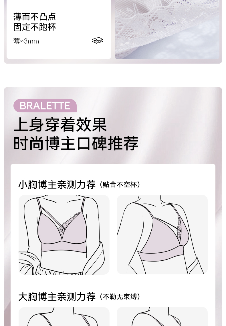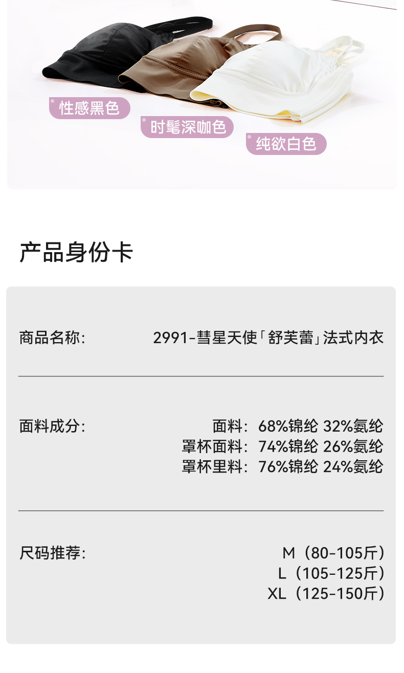 彗星天使舒芙蕾兔耳杯小胸不空大胸不勒舒适承托缎光蕾丝内衣2991#