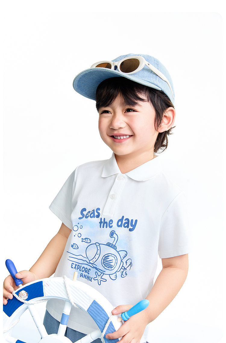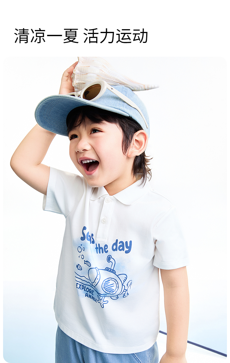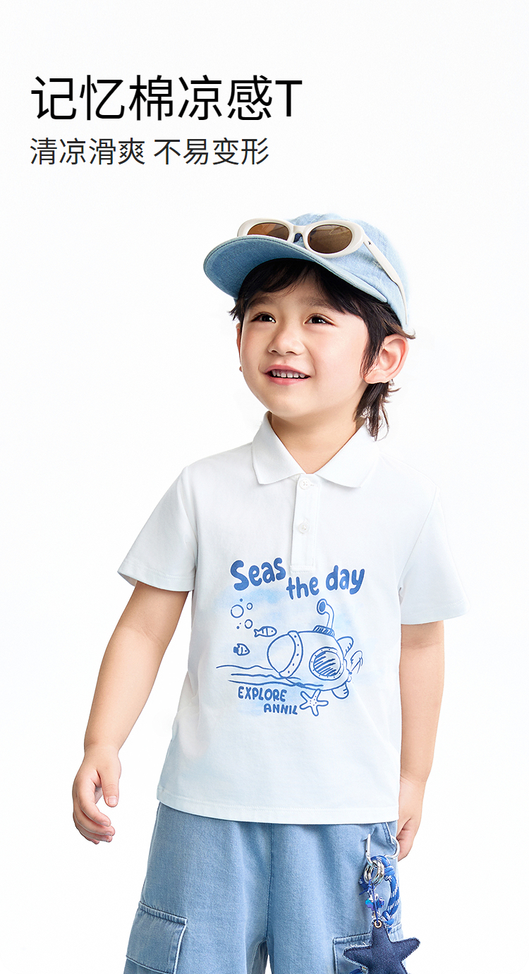 【实体店同款】男童翻领短袖针织衫夏季新款安奈儿童装XB621153