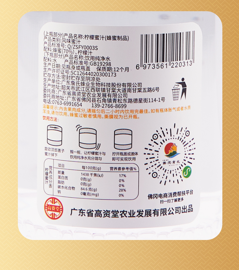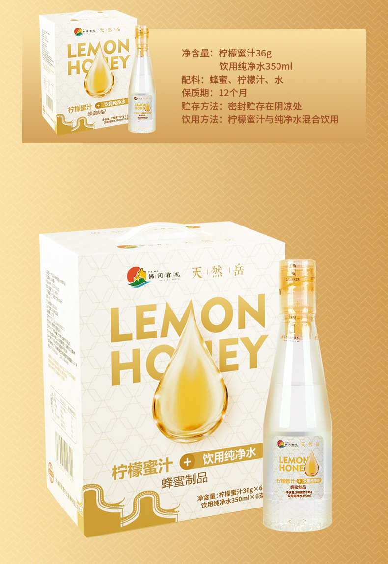 【到店自提 】 天然岳高资堂柠檬蜂蜜水风味饮品(36g+350ml*6支/箱)自提点:振兴中路217号竹山粉葛产业振兴运营中心