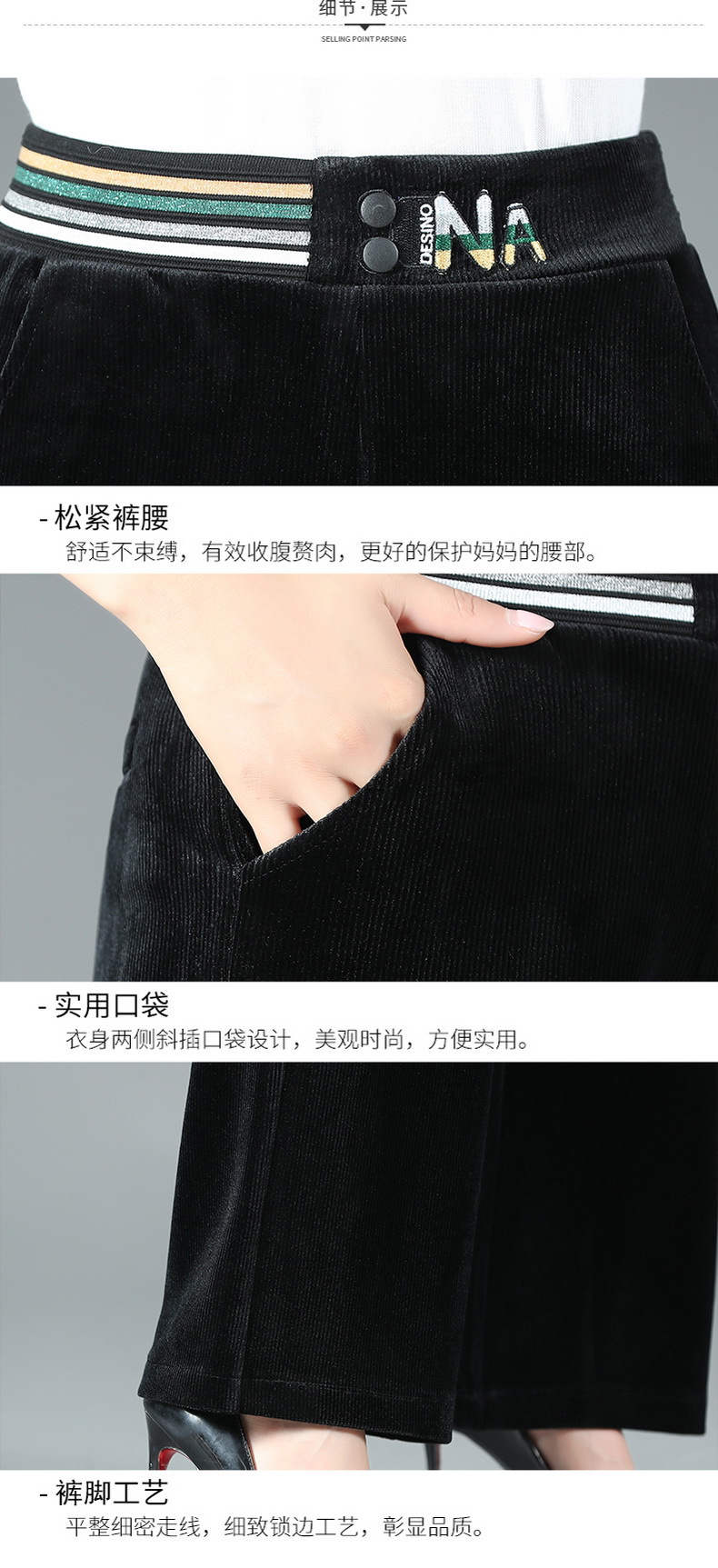 MQ-FYB2106秋新款大码加长高腰显瘦金丝绒阔腿裤