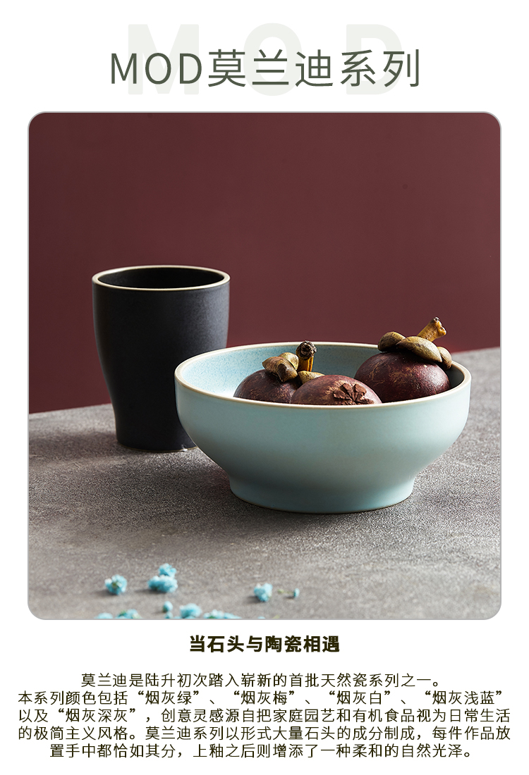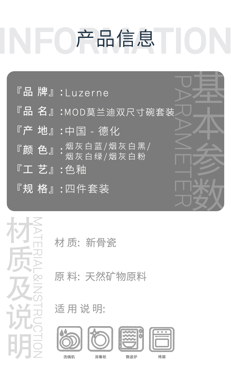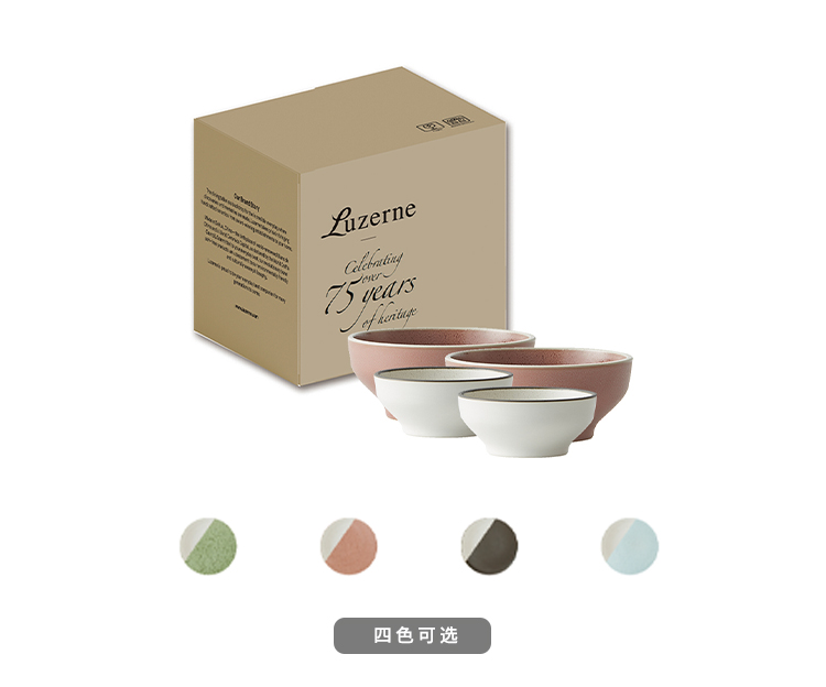 Luzerne陆升陶瓷MOD系列烟灰色大小碗套装4件套-礼盒装