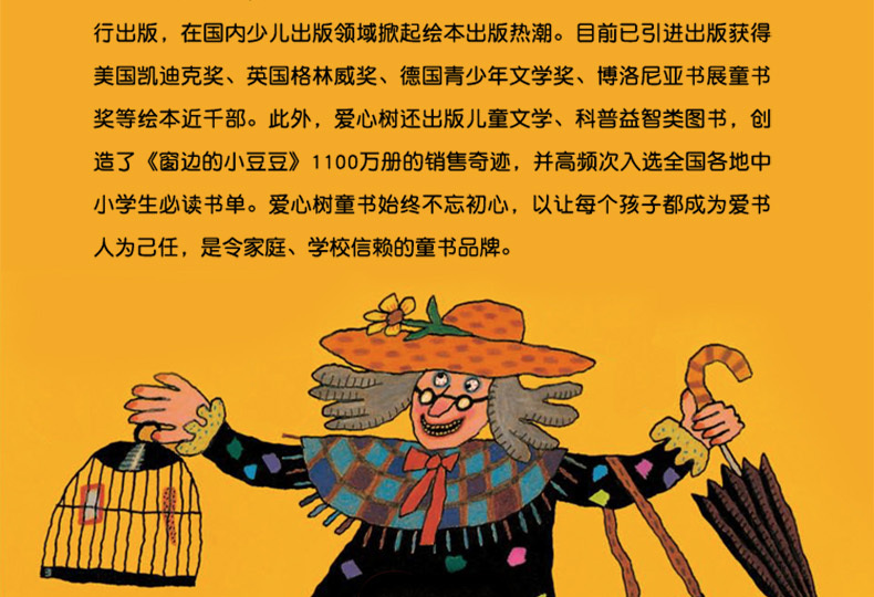 从封面到封底,这本从老民谣翻新的乐趣多多的绘本佳作,一定让孩子们乐不可支。再加上各种鸟类的名称、蜘蛛心爱的汤类食谱还有动物们应景的评论,为传统民谣注入新活力。——《学校图书馆》