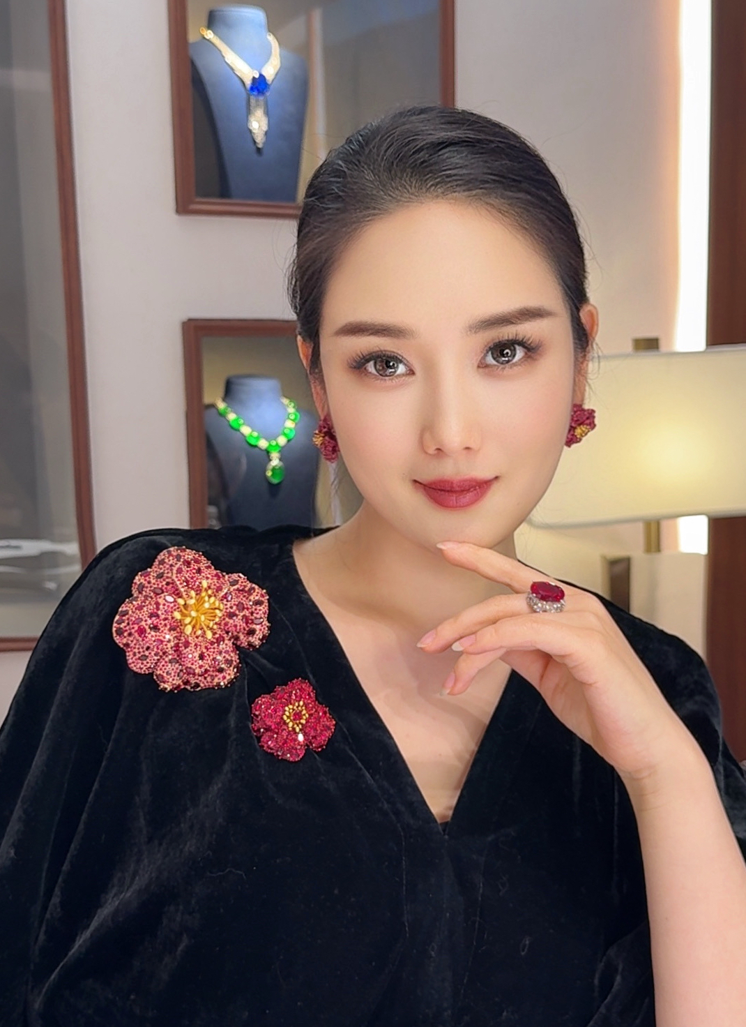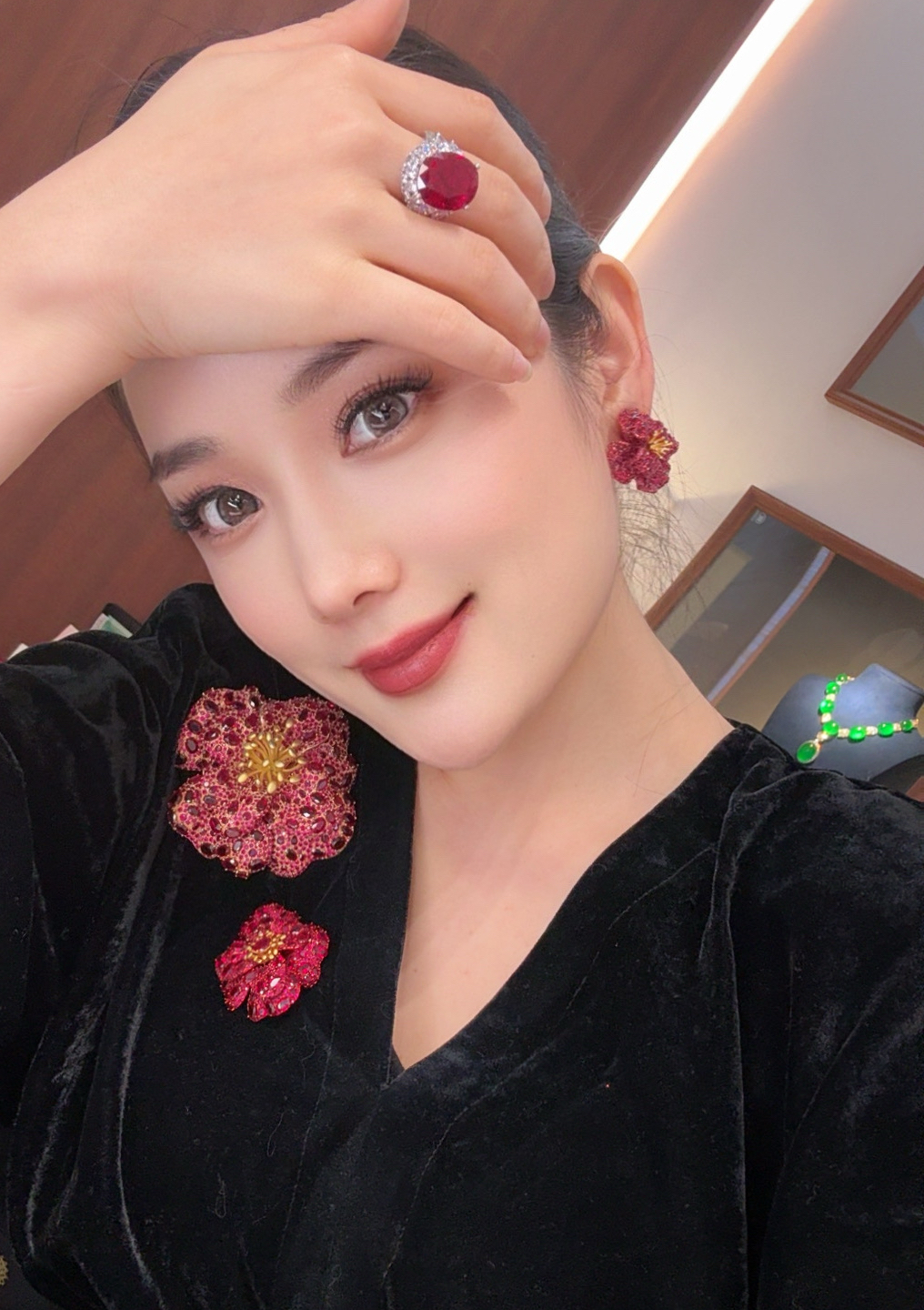 GAONAS 璀璨华丽老钱红色花朵耳环11905ZR