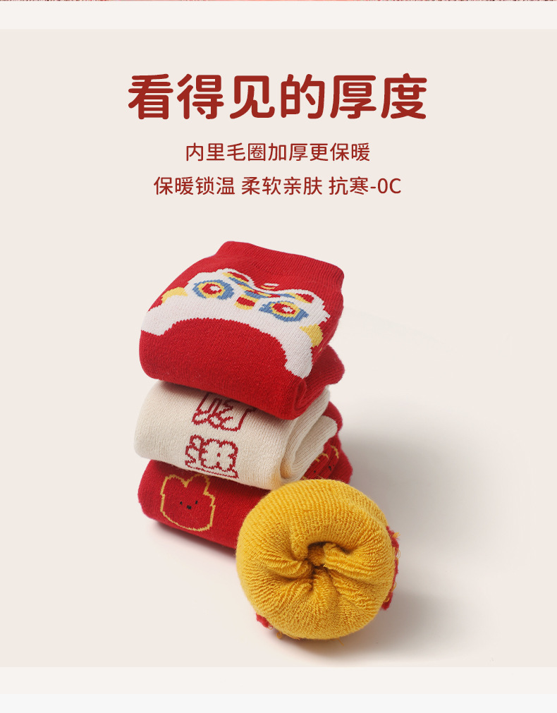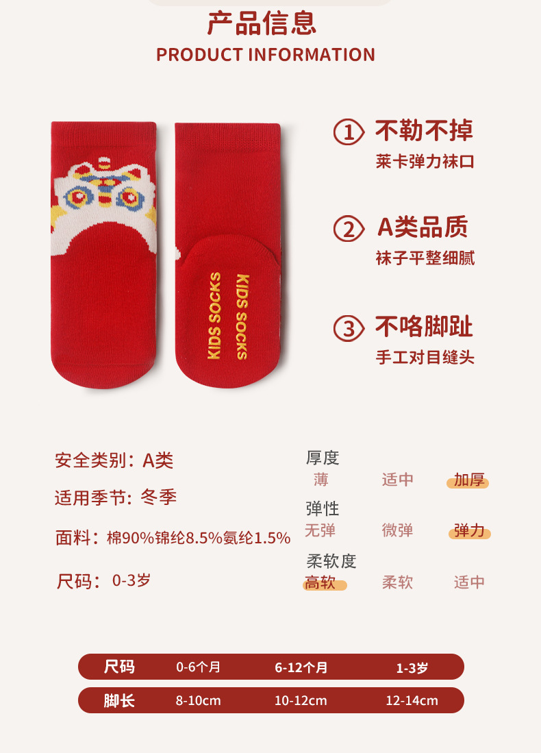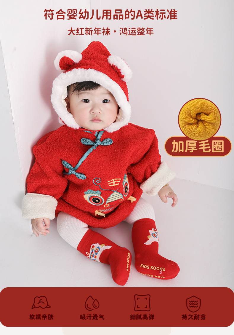 双12抢先购!【时尚又可爱!柔软舒适】婴儿袜子秋冬季加厚保暖无骨松口,新生宝宝满月百天周岁大红新年袜,柔软舒适、A类安全标准、加厚保暖、无荧光剂