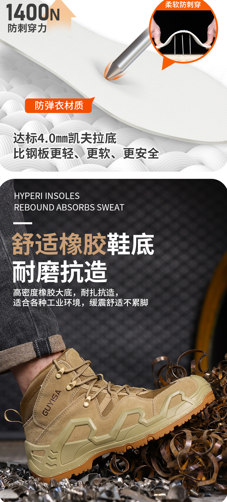 劳保鞋男防砸防刺四季款牛津布钢包头4.0凯夫拉安全鞋工作鞋