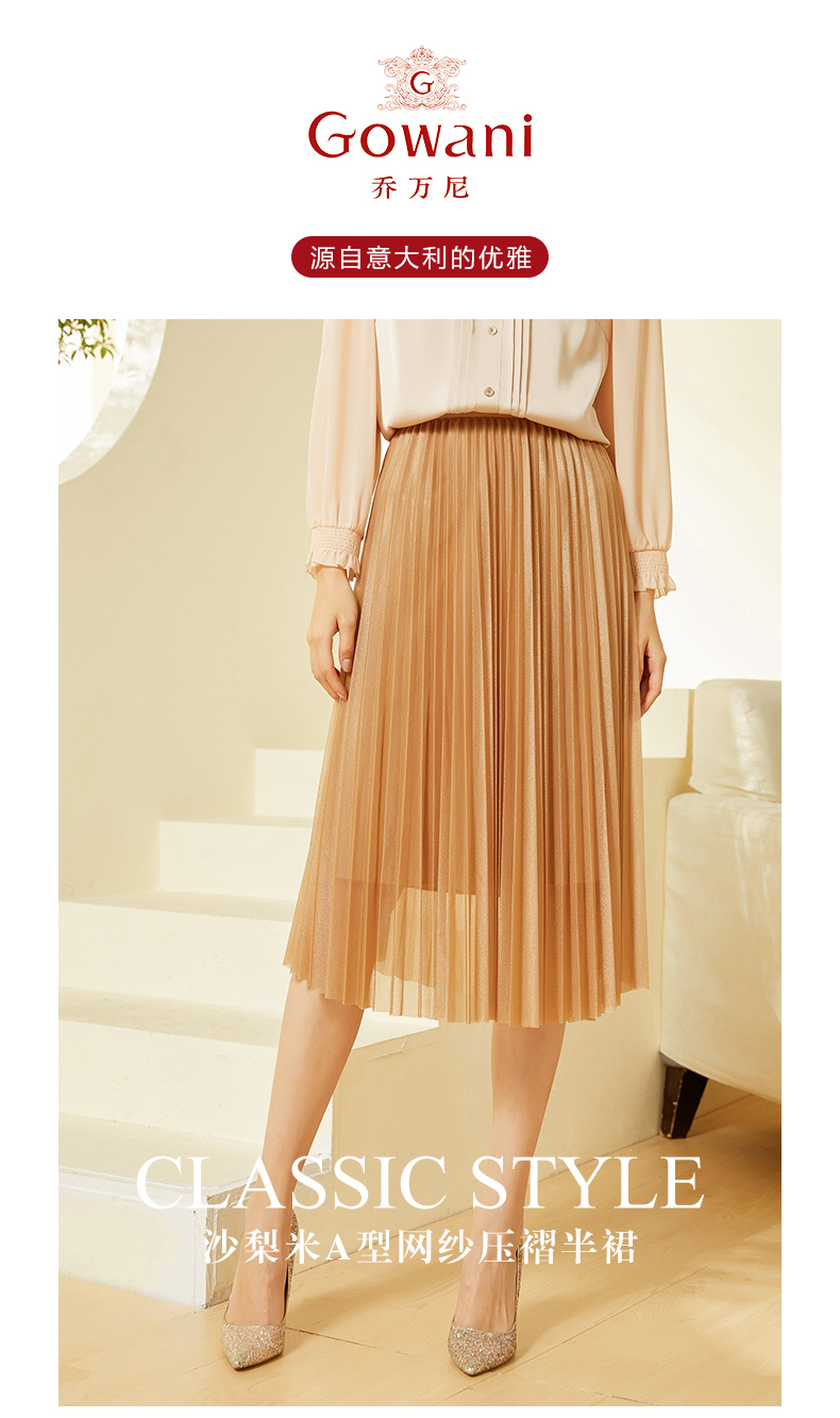 乔万尼半身裙新款春季a字网纱百褶气质高级感半裙EF3D892