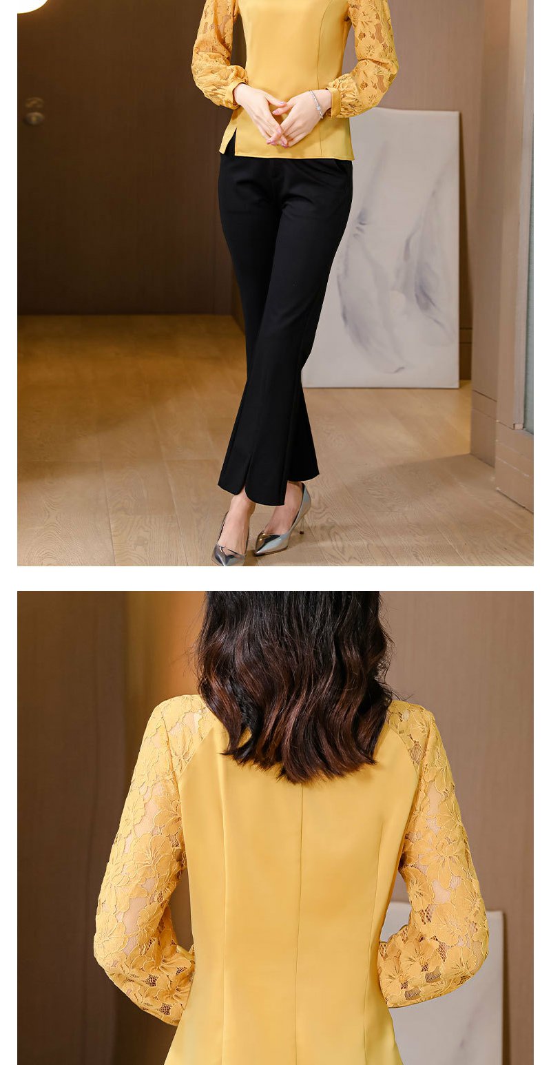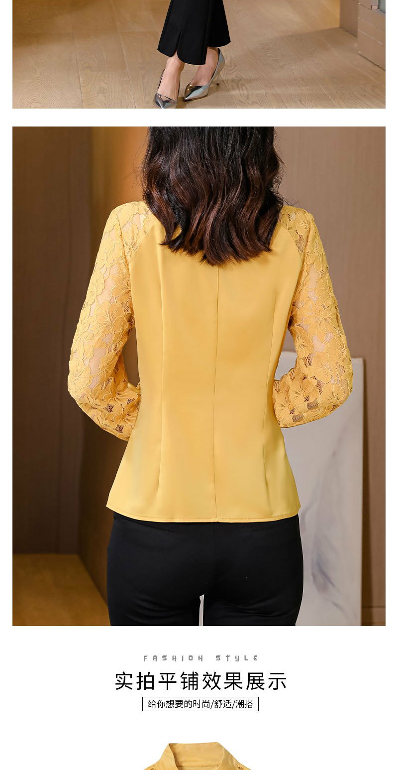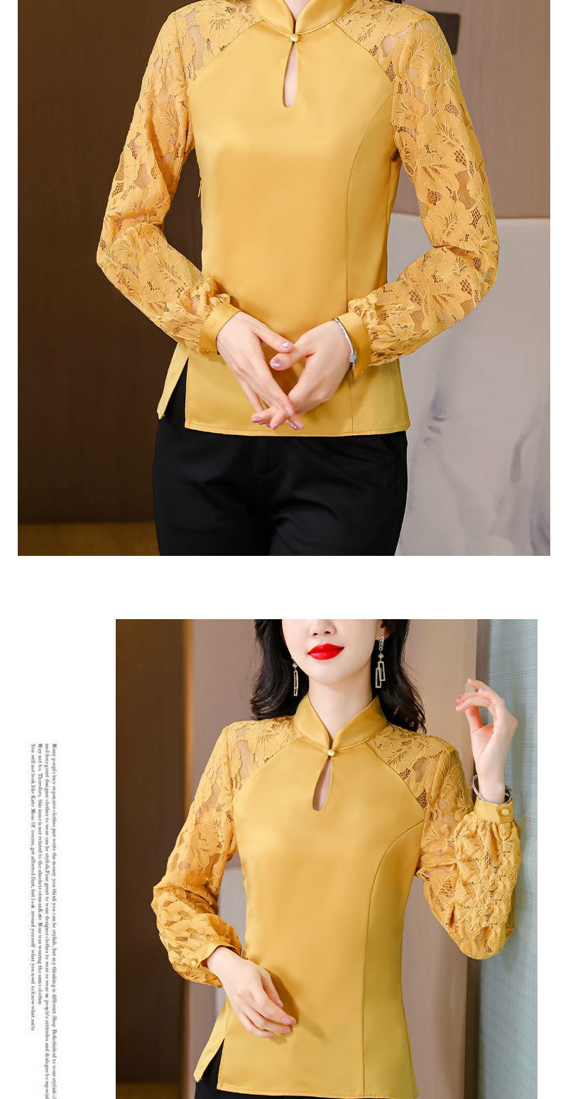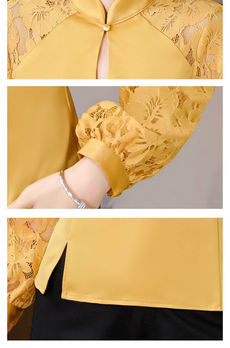 KQL-6932中国风盘扣蕾丝拼接上衣女2024春设计感立领显瘦国风修身长袖衬衫