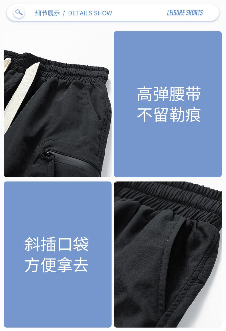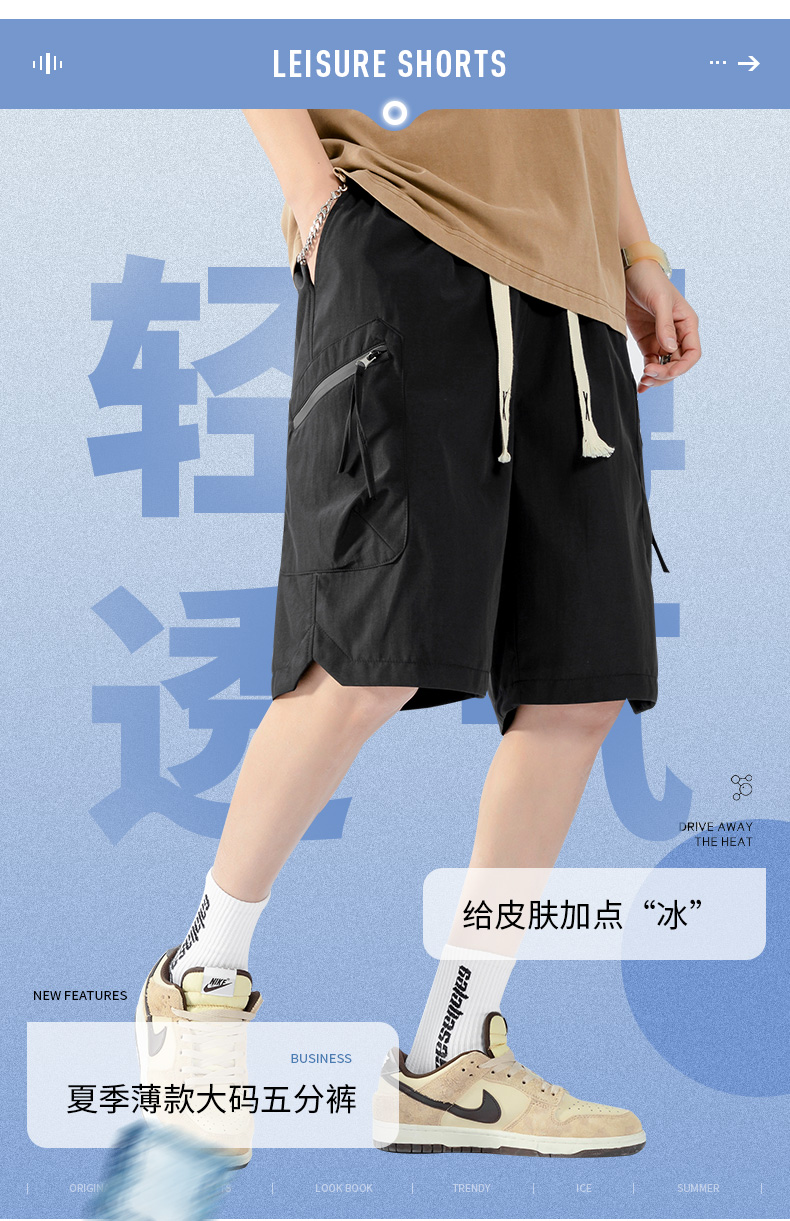 【新款DJR】大依优型大码五分裤工装短裤大号裤子弹力透气加肥加大夏季松紧腰宽松运动短裤沙滩裤