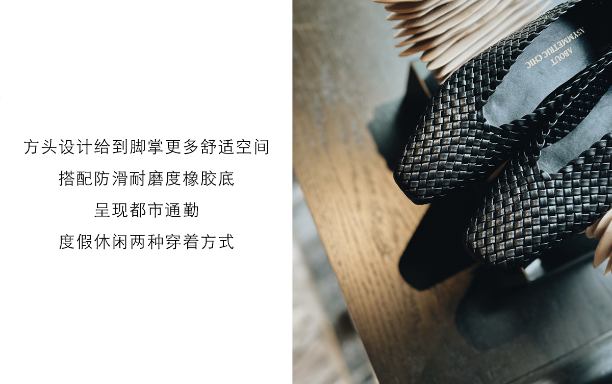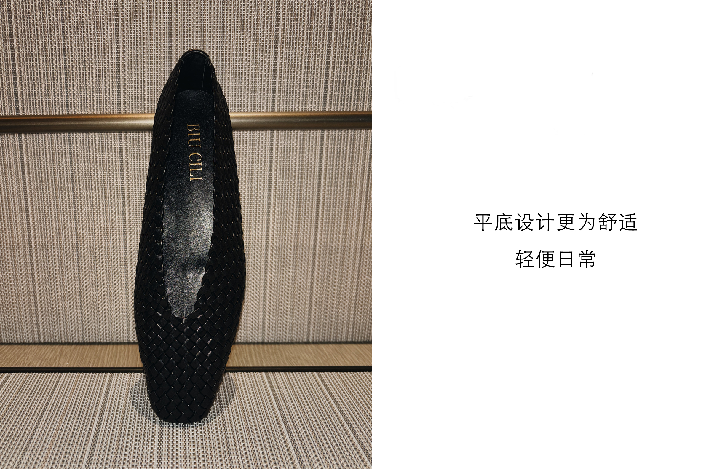 BIUCILI 原创设计方头编织松弛度假感平底单鞋