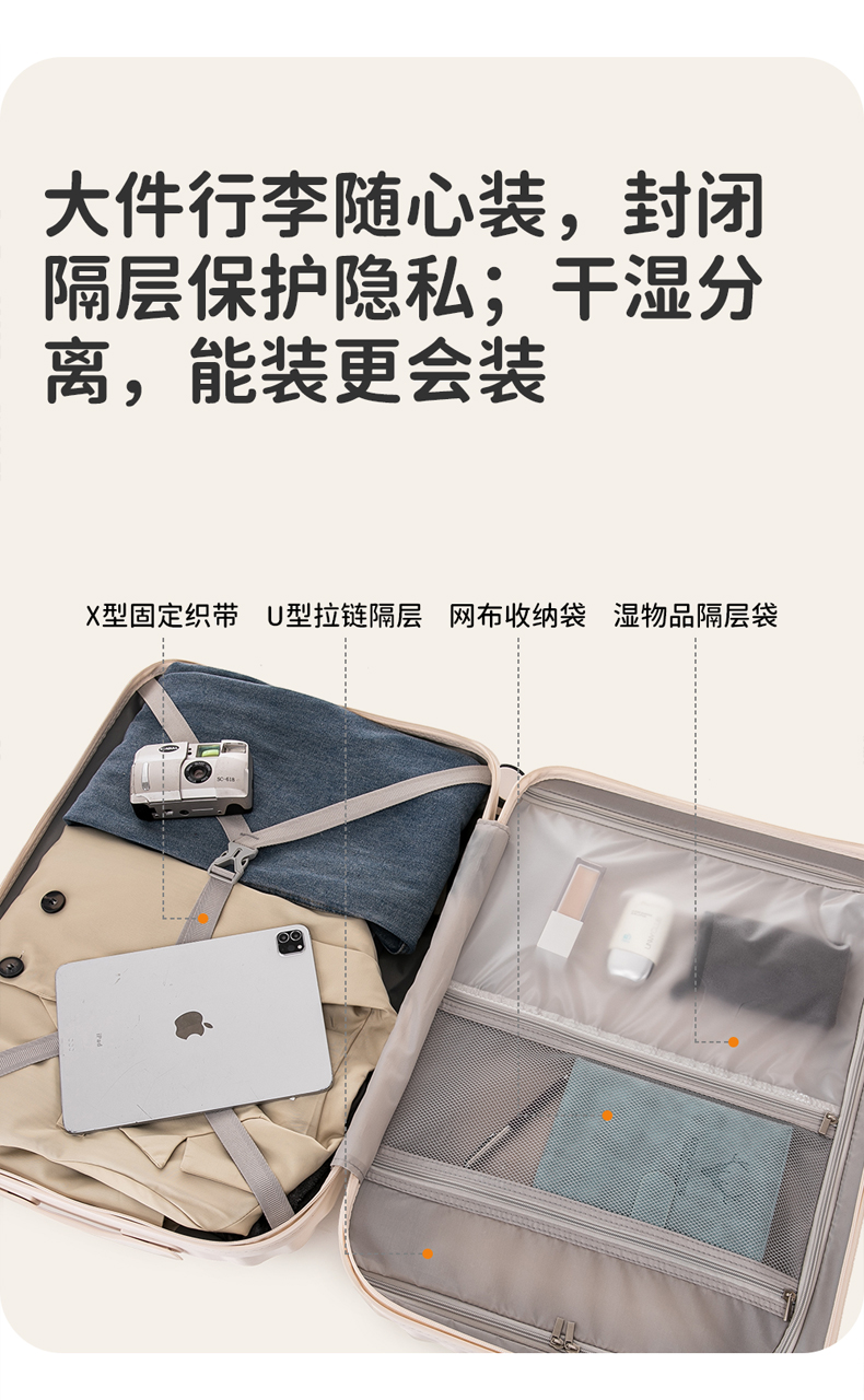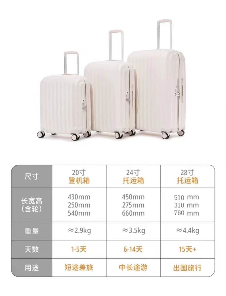 鸿一 极简奶油风行李箱23019 承重200kg+ 360°万向轮,顺滑,省力又静音