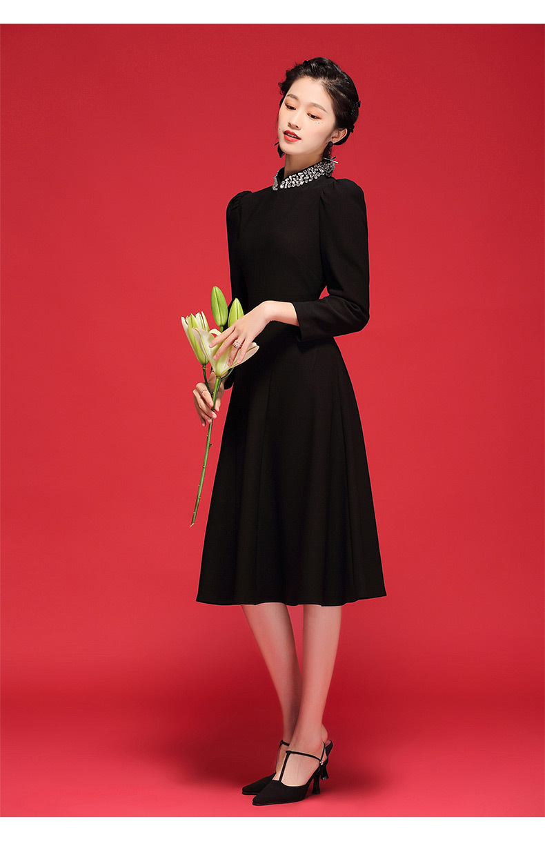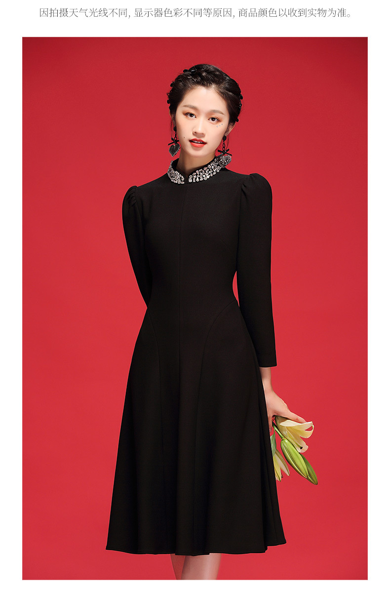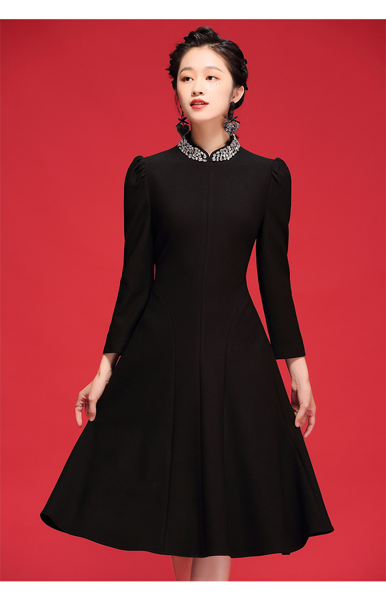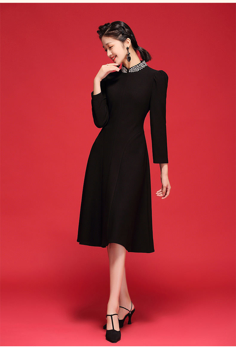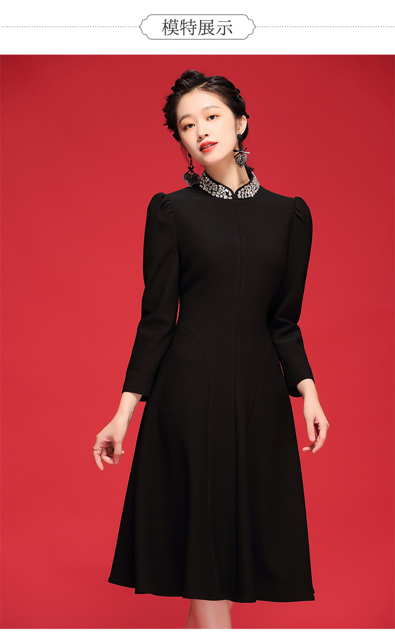 秋冬连衣裙式改良年轻长袖领上手工钉珠旗袍 OY21212