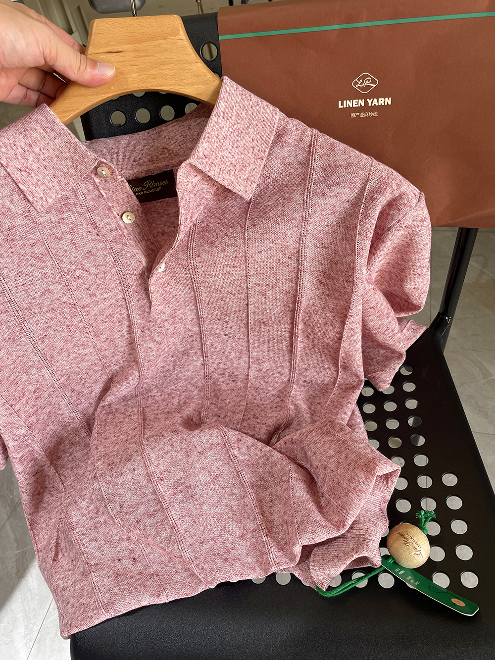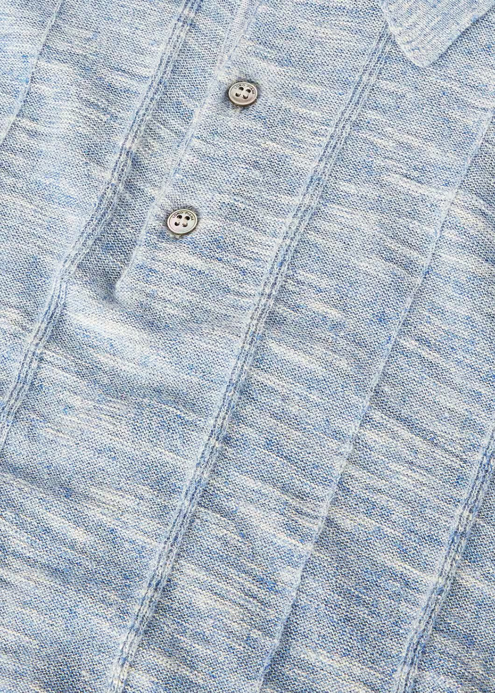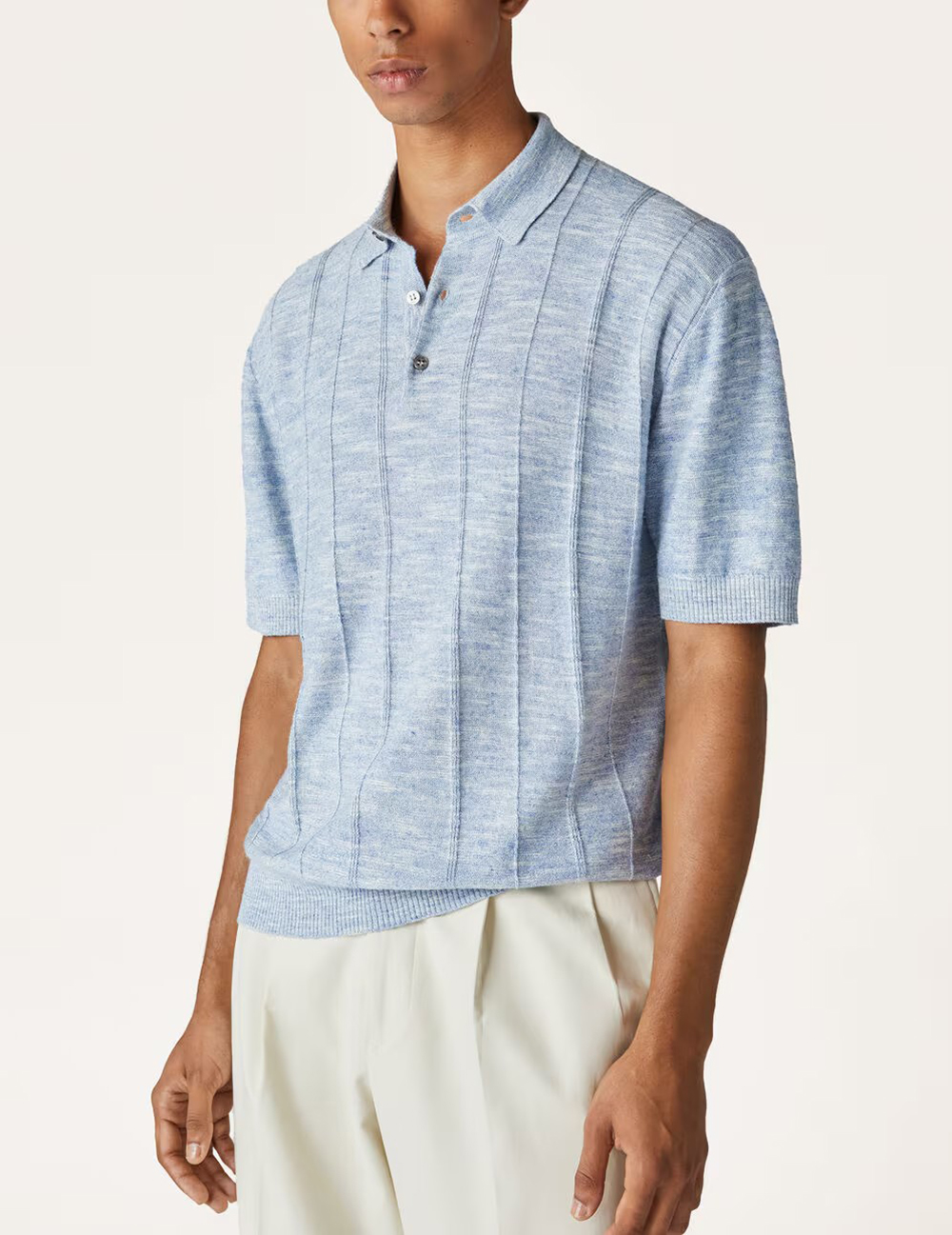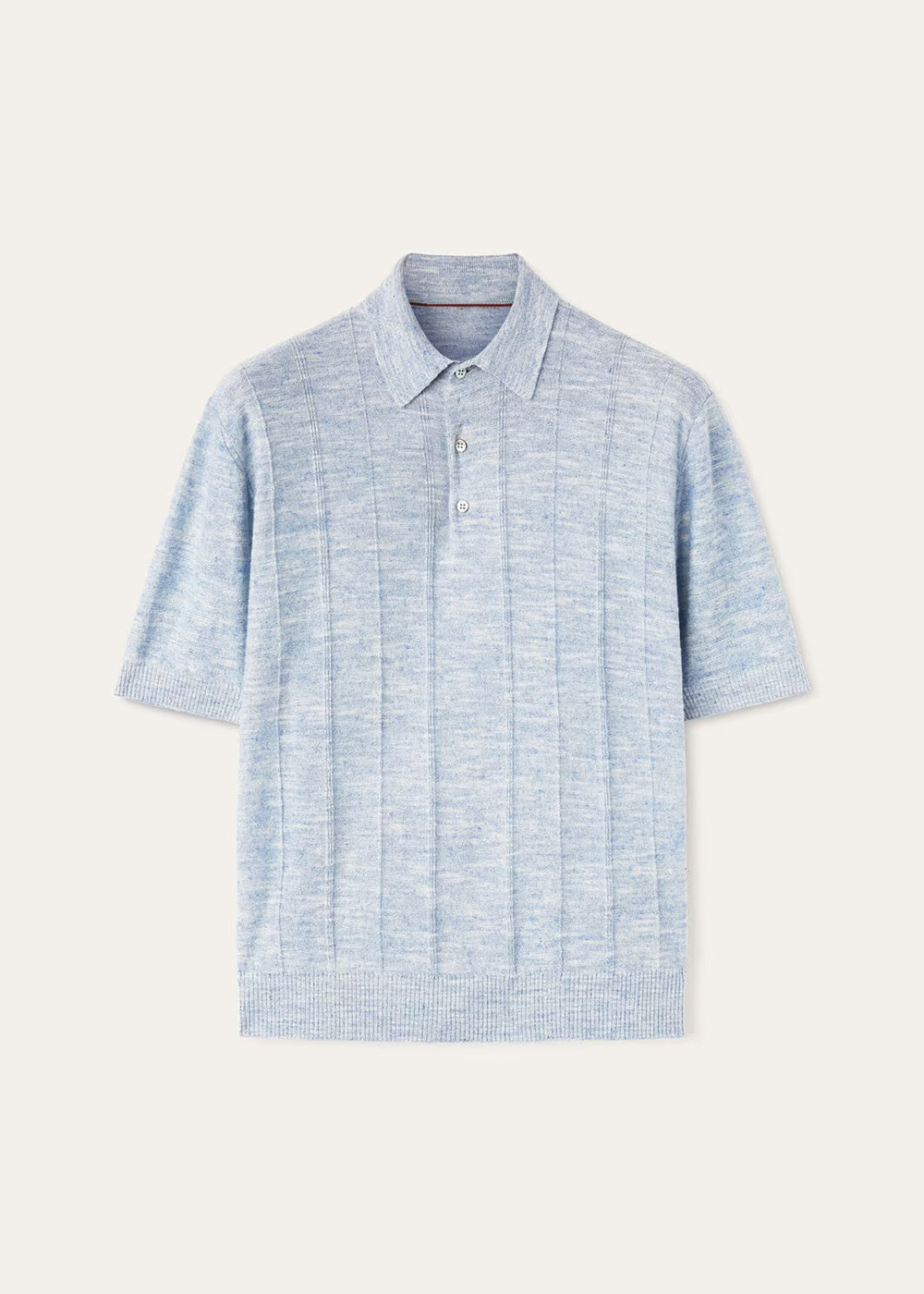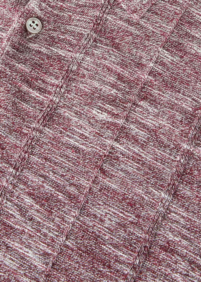 不规则罗纹与这款亚麻混纺圆领衬衫的直肩形成鲜明对比