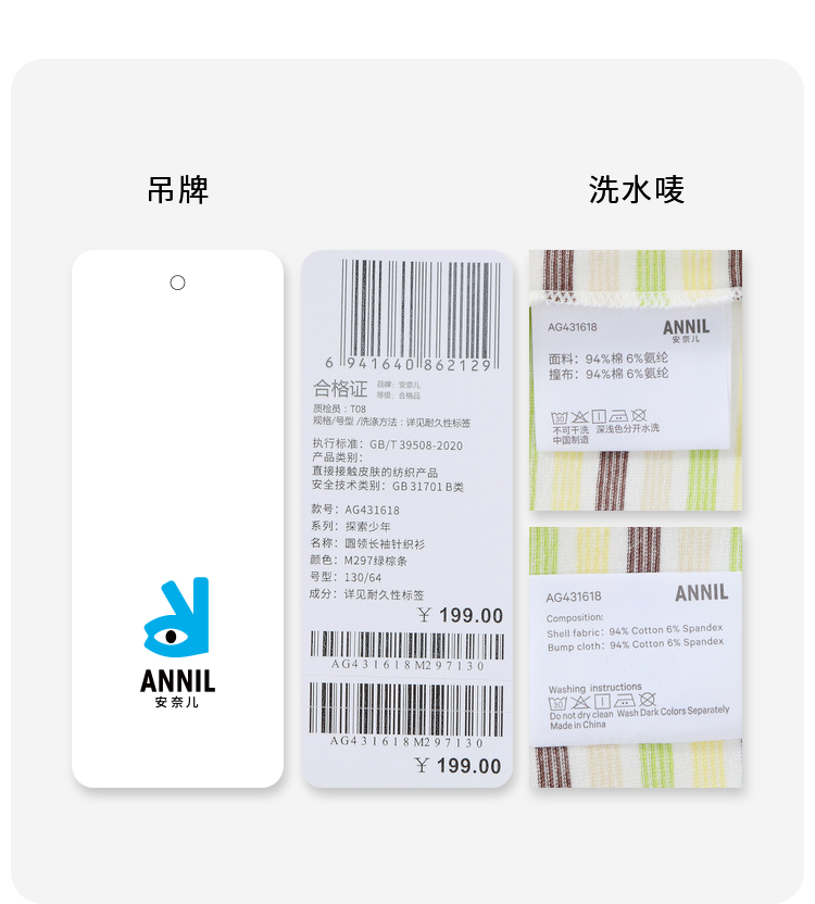 女童多彩条纹打底衫安奈儿童装实体店同款AG431618