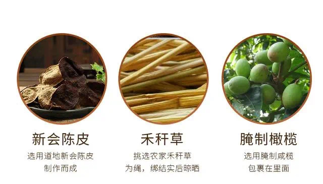新会陈皮、咸榄、禾秆草被称为“广东三宝”,这也是三宝扎中的三宝。