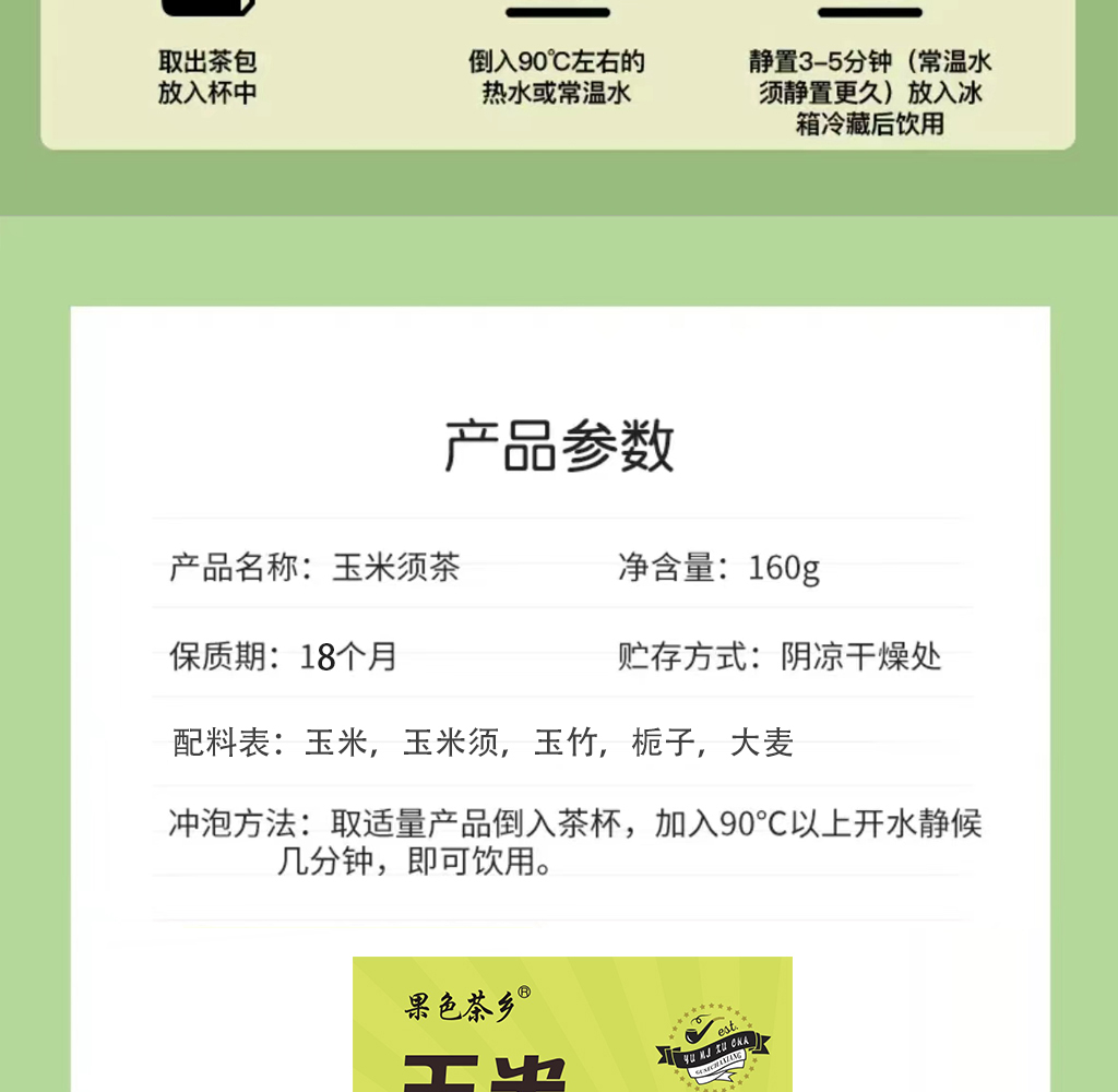 【醇香口感】果色茶香玉米须茶 独立包装袋泡茶20包 160g/盒